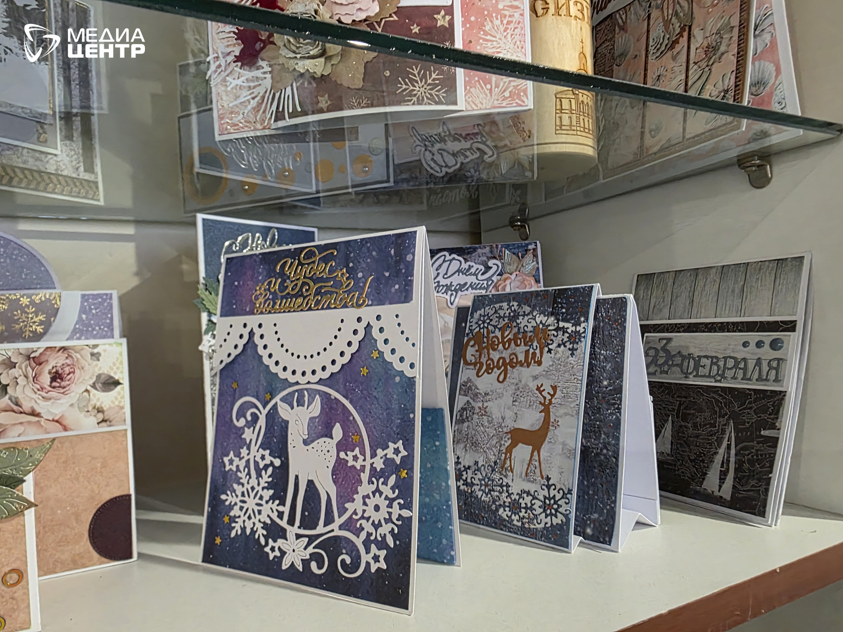 На столе у Ольги Глуховой нас привлекли изделия ручной работы — открытки, шкатулки, новогодние игрушки — из бумаги и бересты. Одно из основных ее увлечений — скрапбукинг (в переводе с английского «изготовление книг из вырезок»). С его помощью можно своими руками сделать поздравительную открытку, оформить фотоальбом. Прелестный подарок на день рождения или к иной памятной дате. Такие мелочи украшают нашу жизнь, делают окружающее нас пространство эстетичным.