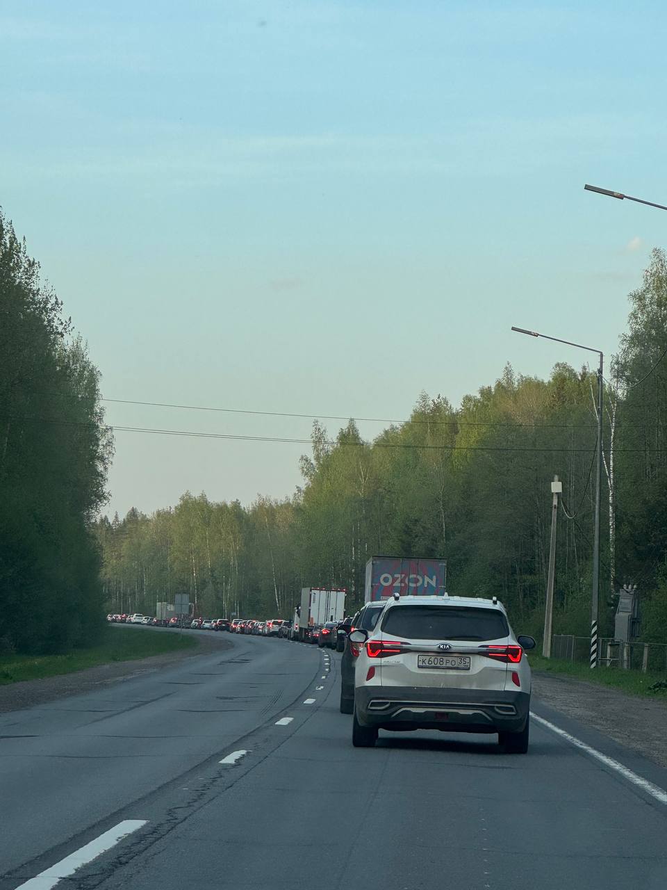 В многокилометровый затор попали в воскресенье вечером череповчане, которые возвращались в город по трассе со стороны Санкт-Петербурга. Пробка начиналась у поворота на «ФосАгро», где строят новый перекресток с круговым движением.
