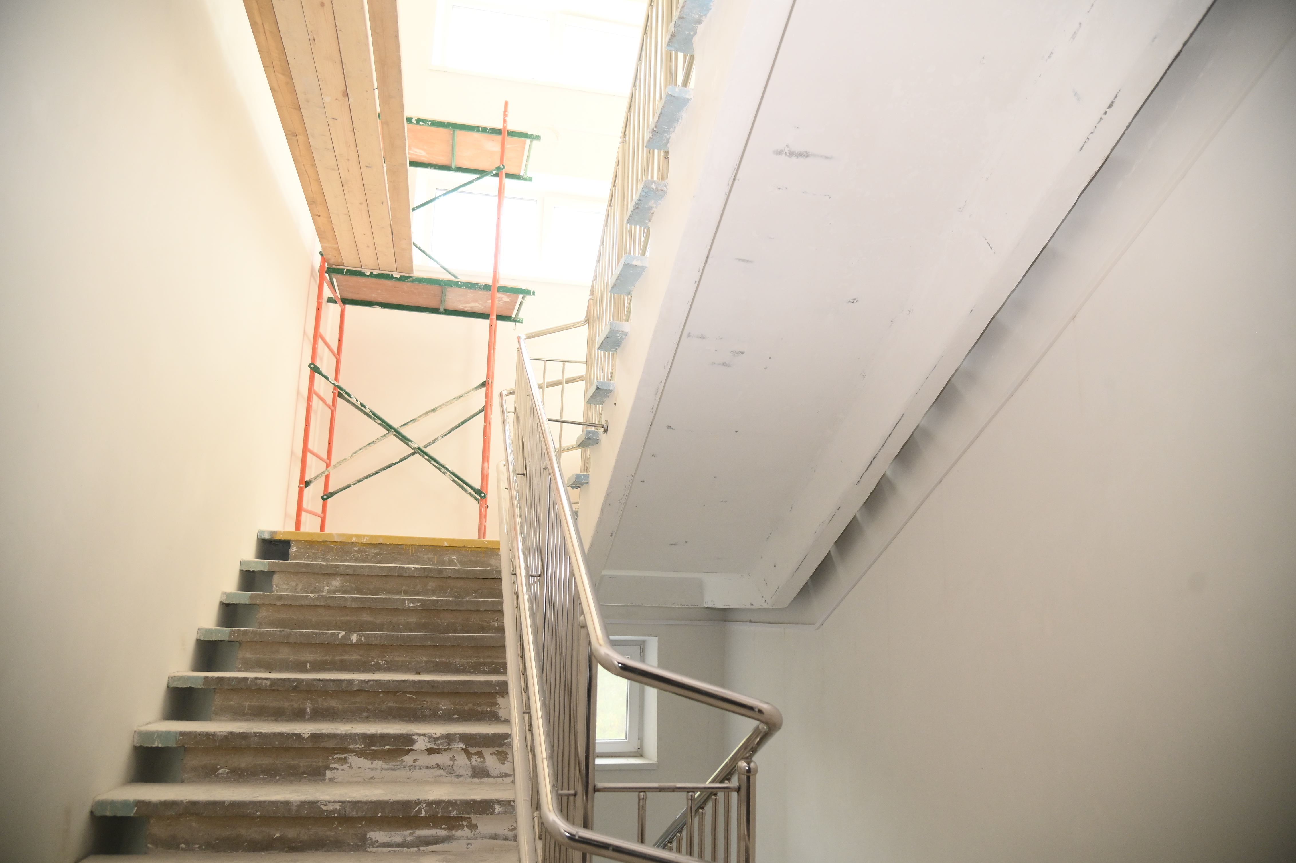 - В школе тишина и значительный объем незавершенных работ. Со слов чиновников дел оставалось на несколько дней, но спустя 35 дней воз и ныне там. Прошел по зданию, стало понятно, почему сегодня предприняли попытку (безуспешную) не пустить внутрь. Ни тебе ряженых «маляров», ни провокаторов, строителей немного.