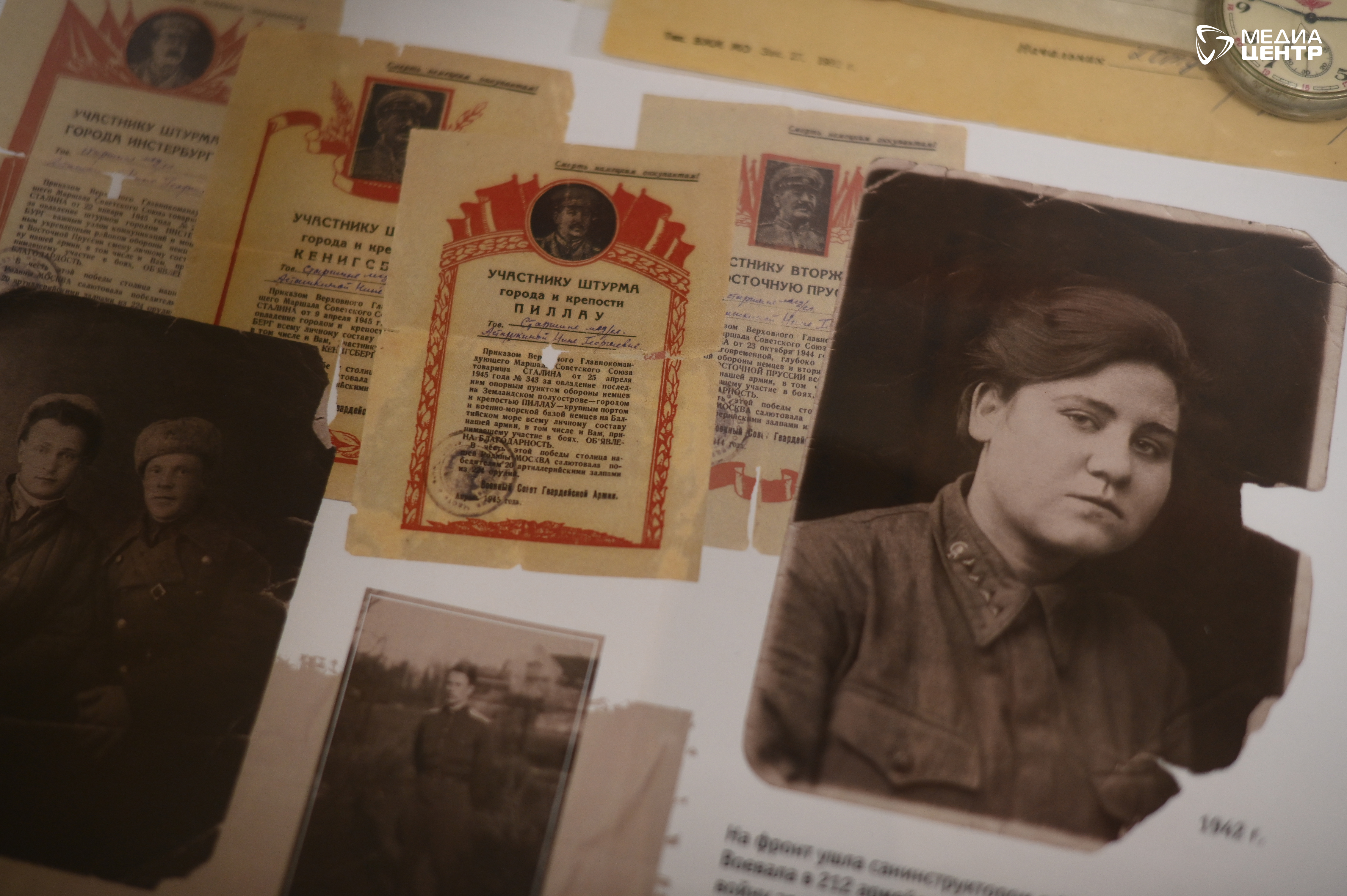 С 2006 года музей не раз переезжал. Его открытие состоялось в здании совета ветеранов на Вологодской, в мае 2008-го он переехал в помещение на Мира, 27. Сейчас экскурсии проводят на Жукова, 3а. Экспонаты представлены разные: тут и фрагмент ручного пулемета, и штык винтовки, корпус противопехотной мины, награды, почетные грамоты, вырезки из газет и простые предметы быта военной поры. А еще солдатские письма, которые при желании можно почитать — каждое отсканировано и хранится в толстой папке.