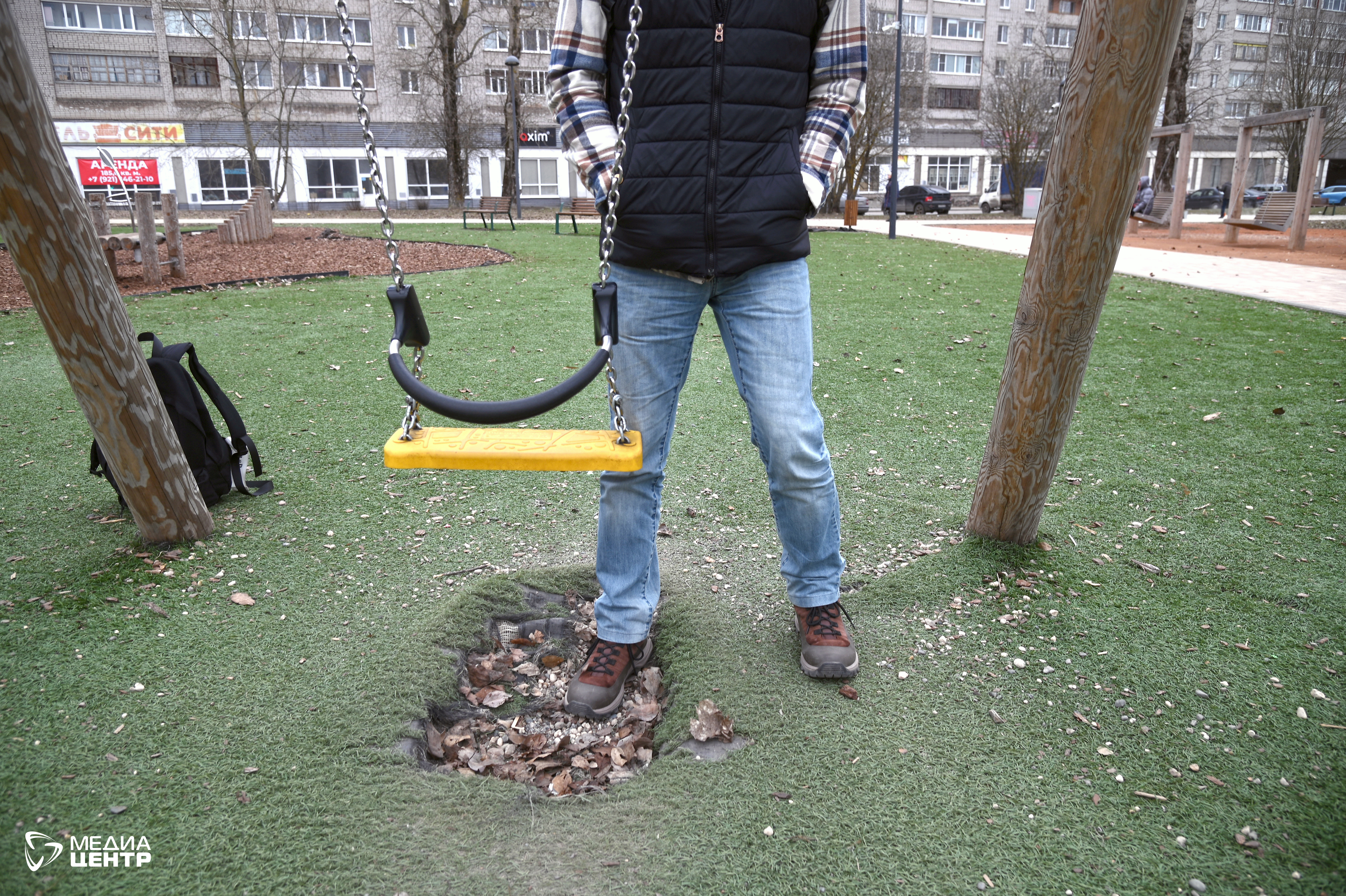 Ремонта требует детская площадка, где под сиденьями качелей образовались немаленькие ямы. Ребятни там всегда хватает, а с наступлением тепла станет еще больше.
