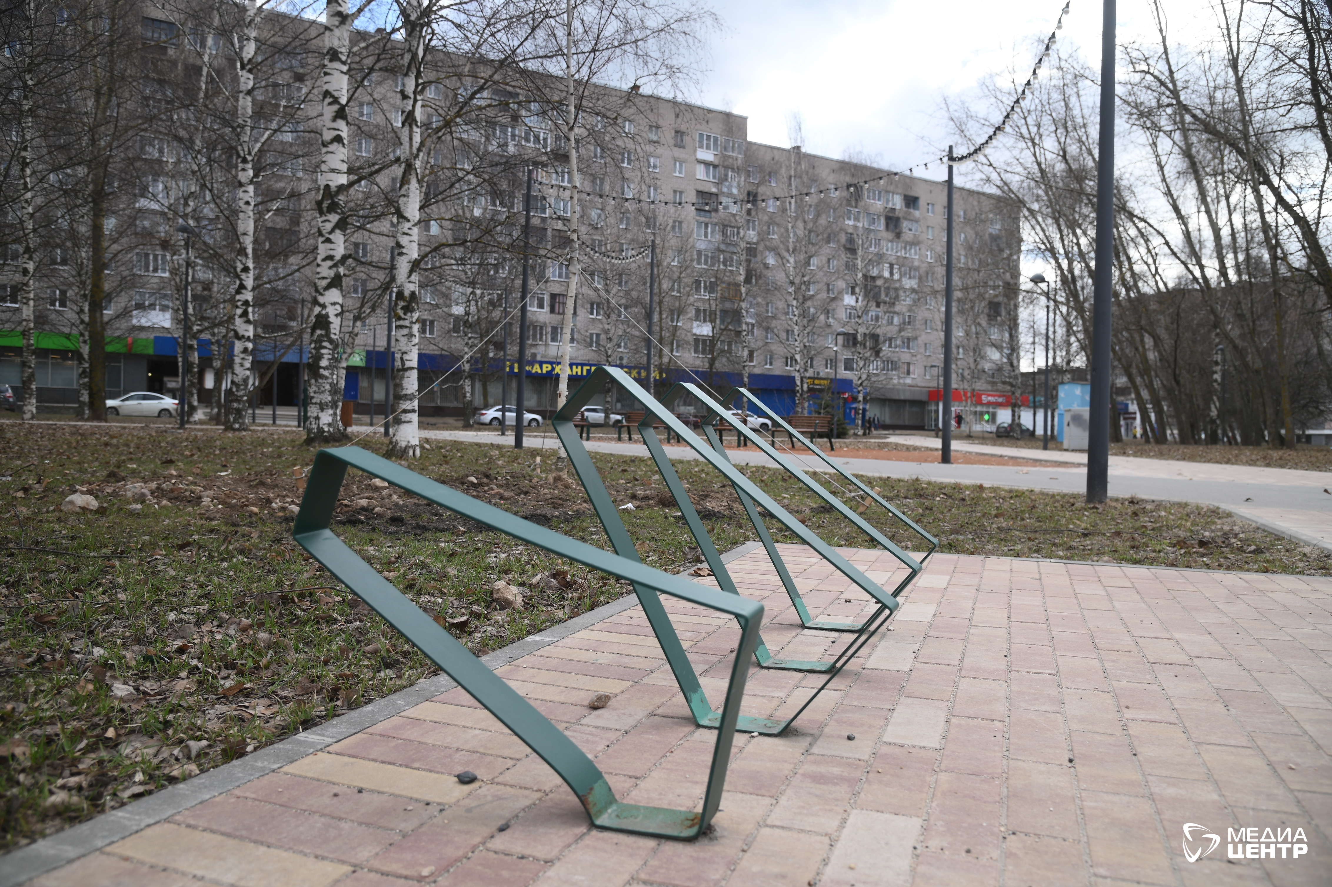 Также не мешает поправить отдельные детали велосипедных парковок. Местами они погнуты.