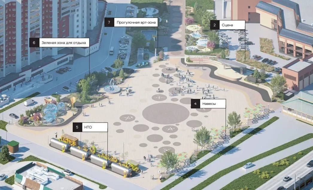 К юбилею города, который будет отмечаться в 2027 году, здесь появится полноценное общественное пространство с современной инфраструктурой. Согласно опубликованным изображениям, на площади разместятся: