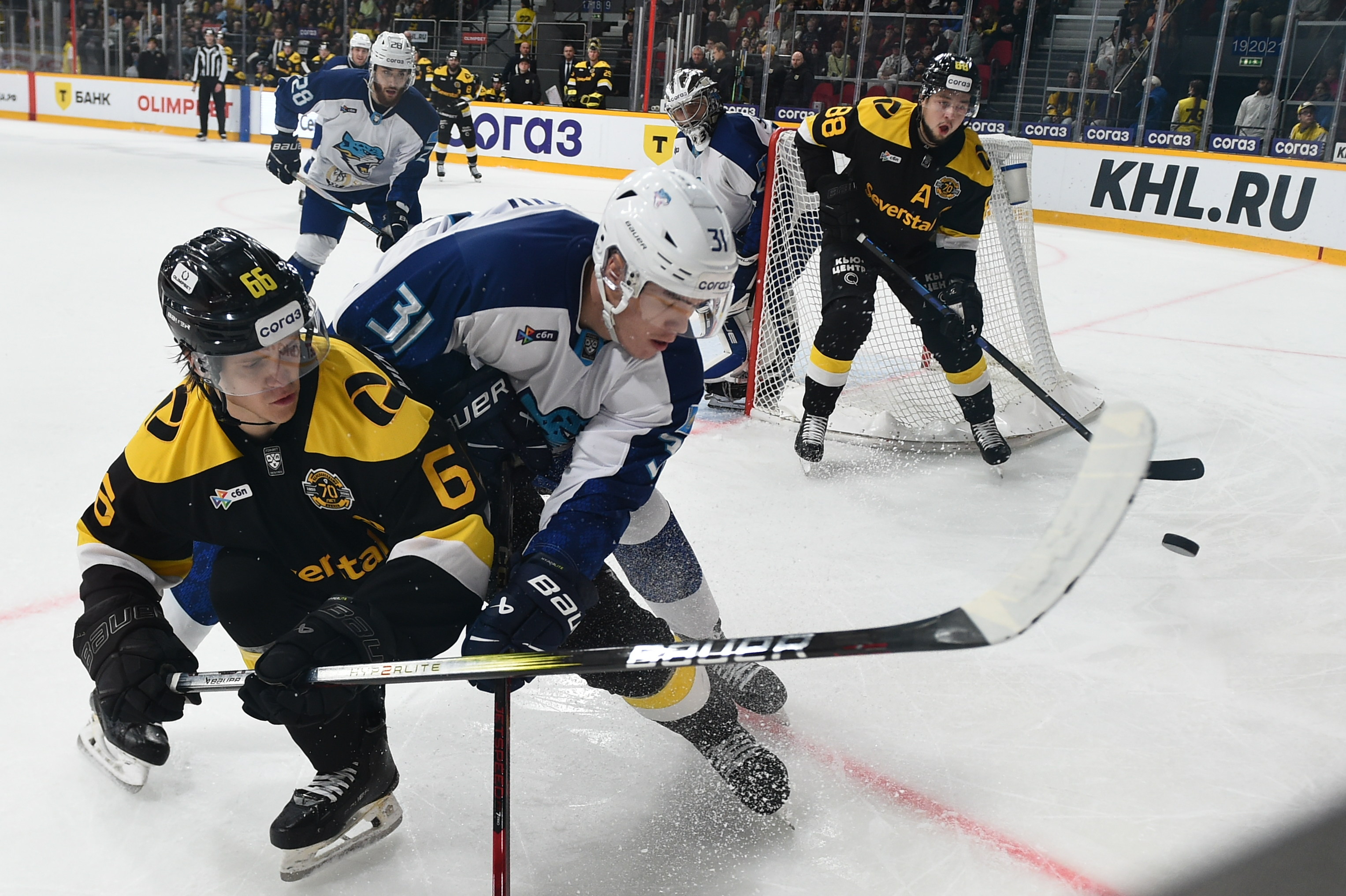 Хозяева открыли счет на 6-й минуте игры, реализовав первое же большинство, отличился нападающий Кирилл Пилипенко. Гости ответили дублем на 13-й минуте, две шайбы влетели в ворота Скотникова с интервалом в 20 секунд.