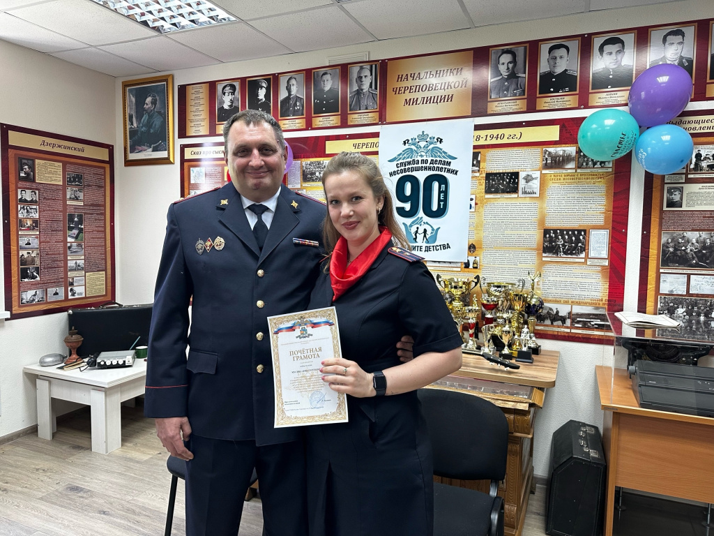 В канун юбилея службы руководство череповецкой полиции вручило памятные медали «90 лет ПДН» и благодарственные письма сотрудникам и ветеранам.![]()