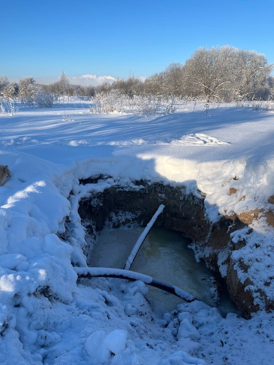 Выкопанные траншеи заполнились водой. Периметр работ не оборудован должным образом: отсутствует заградительная лента и предупреждающие знаки, отмечают местные жители.