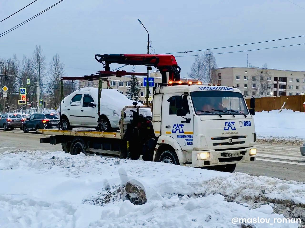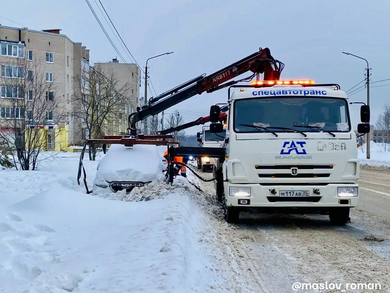 Сегодня на улице Олимпийской убирают автомобили, припаркованные с нарушением правил.