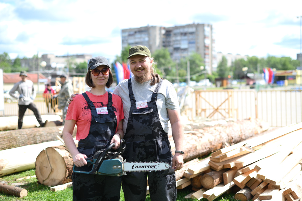 По условиям фестиваля этого года конкурсантам предстоит создать фигуру на тему "Сила русского мира". Каждый раскрывает задачу по-своему. Например, команда "ХОД пилой" из Абаканова, Николай и Ольга Лапины, будут ваять музыкальный дуэт на лавке - русского богатыря с бубном и медведя с балалайкой. Хотя в команде всего два участника, а один из них и вовсе новичок в резьбе по дереву, шансы на победу у них есть, ведь Николай Лапин - профессионал своего дела и не раз это доказывал. Зимой команда "ХОД пилой" заняла первое место в конкурсе ледяных скульптур в Вологде.