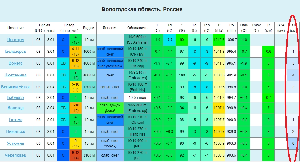 По данным синоптиков, утром 8 апреля на большинстве метеостанций Вологодской области отмечается временный снежный покров (от 1 до 4 см). По данным метеостанции Биряково (Сокольский округ) высота снежного покрова составляет 6 см.