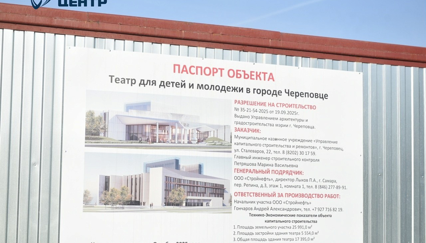 О старте строительства грандиозного по своим масштабам и затратам сооружения (во всяком случае для Череповца) заявили городские и областные власти. Располагаться «Театр для детей и молодежи» будет в 110-м микрорайоне на участке площадью 26 тысяч квадратных метров, выходя фасадом на Шекснинский проспект.