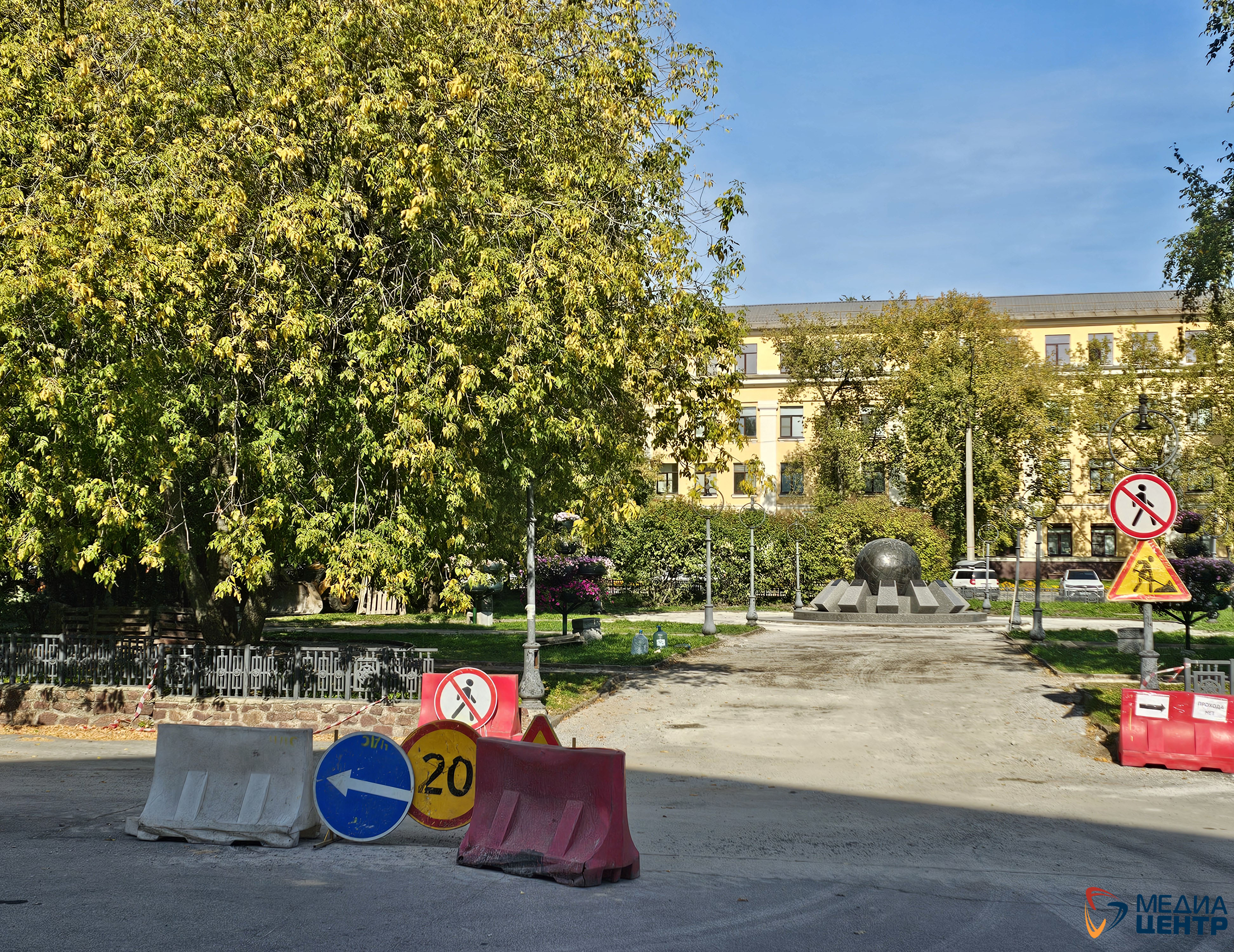 Подрядчик начал демонтаж разрушенной тротуарной плитки. Ее полностью заменят, а также установят новые скамейки, урны и фонари.