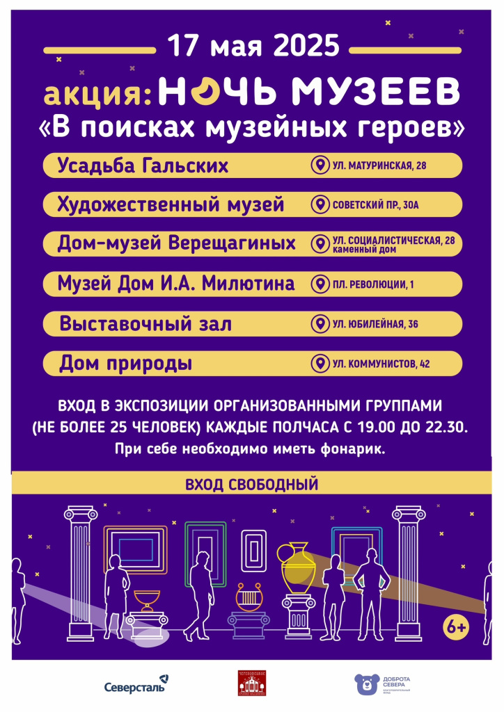 В рамках ежегодной акции «Ночь музеев» (6+), которая состоится 17 мая в Череповце, посетители смогут погрузиться в атмосферу героизма и патриотизма. Мероприятие пройдёт при поддержке компании «Северсталь» и Благотворительного фонда «Доброта Севера».