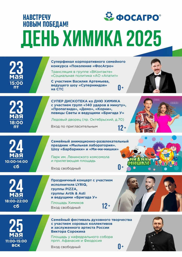 Группы Pizza, Artic & Asti, а также исполнитель LYRIQ выступят на площади Химиков 24 мая (12+). Вход свободный.