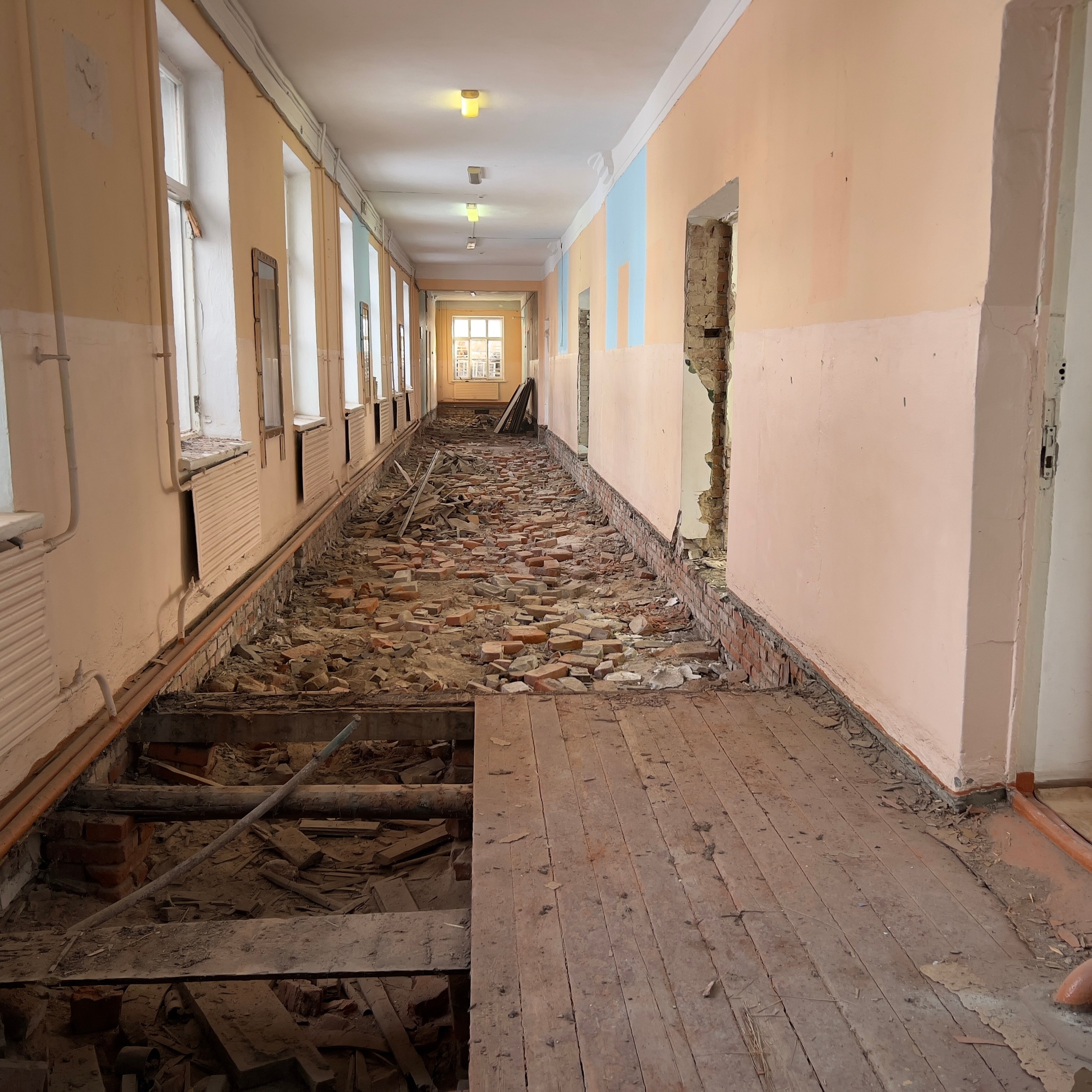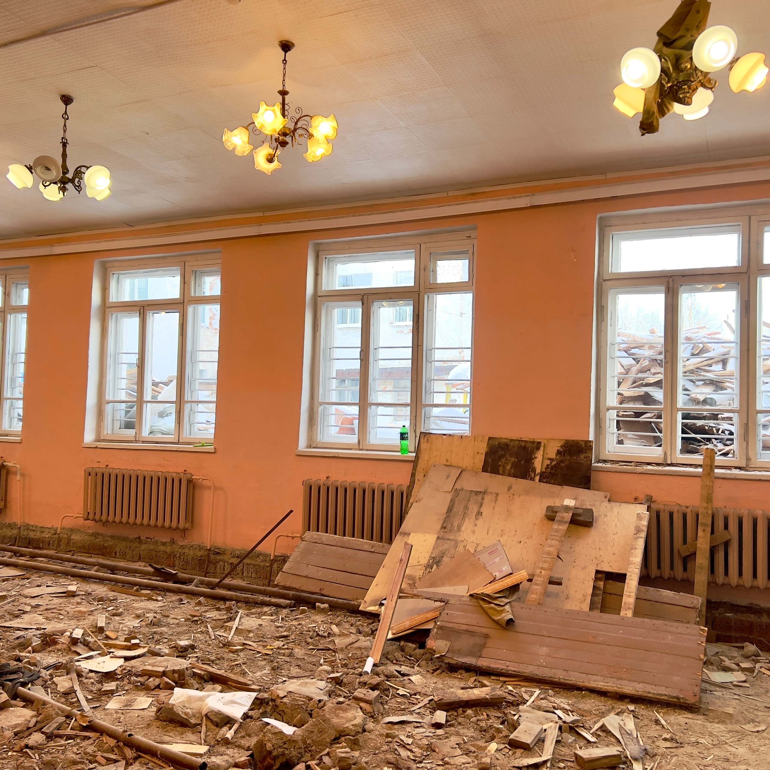 Сейчас на площадке идёт подготовительный этап — специалисты демонтируют старые конструкции и оборудование.