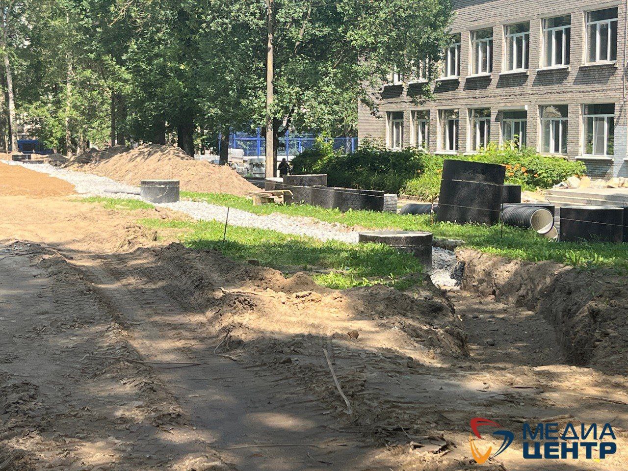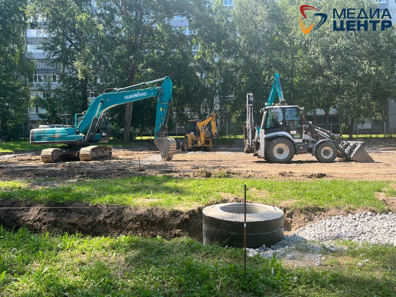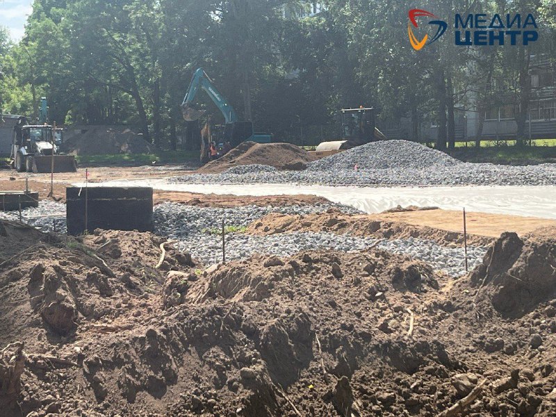 На ул. Набережной, 55 сейчас полным ходом идёт строительство. Прошло всего три недели с начала работ, а подрядчик уже прокладывает дренажную систему и готовит площадку для освещения. К концу октября дети смогут тренироваться на обновлённой территории.