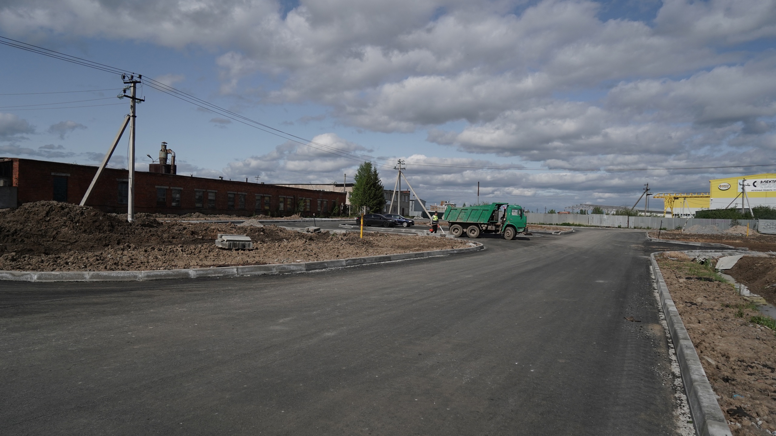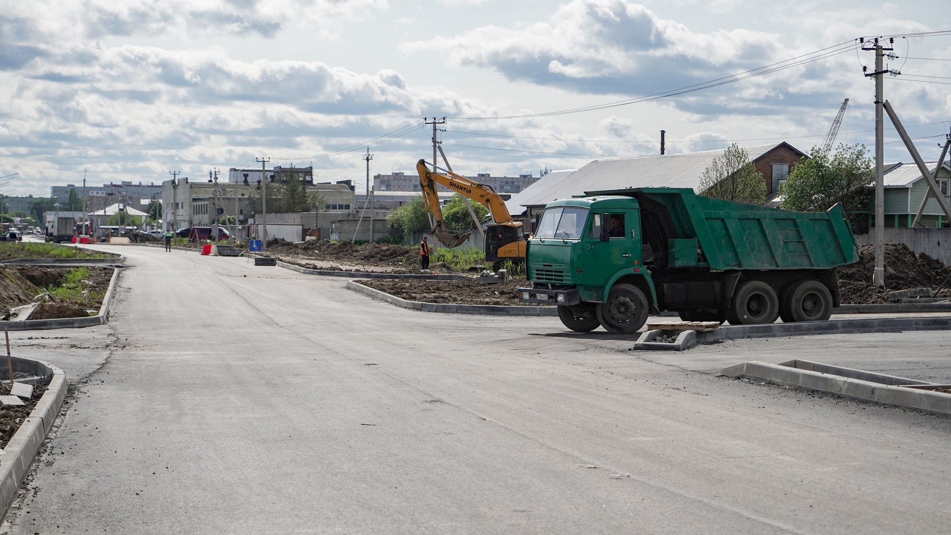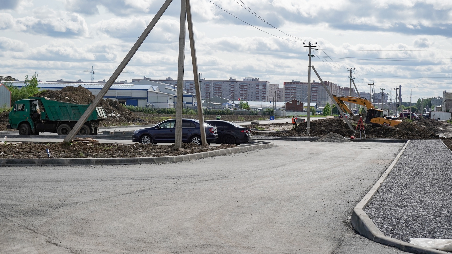 На всём протяжении этого участка, протяженностью один километр, уже создано дорожное основание для проезжей части и тротуаров. Также установлен бортовой камень и уложен нижний слой асфальтобетонного покрытия.