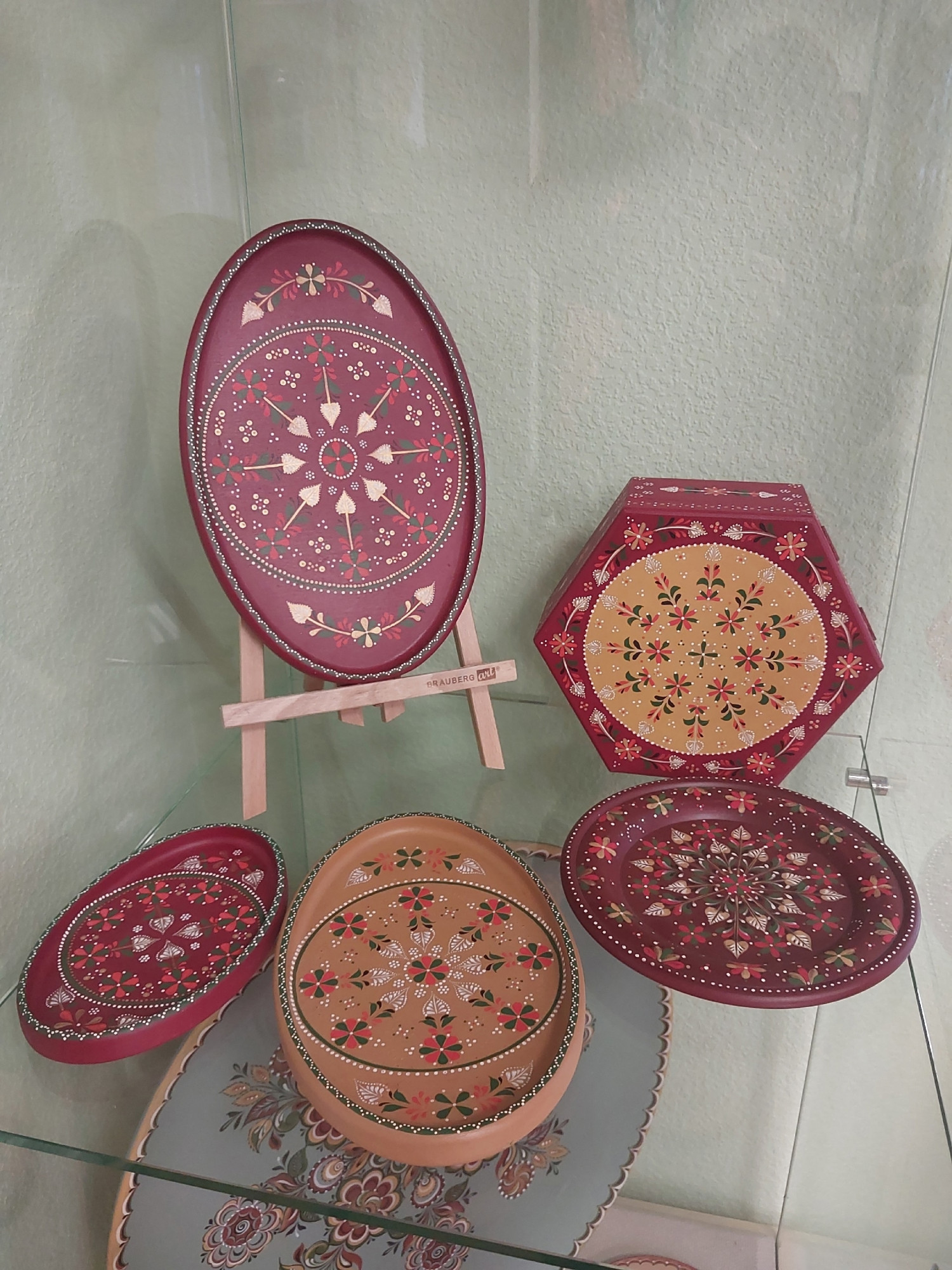 Еще представлены расписные короба, тарелки и музыкальные инструменты юных мастеров из объединения «Художественная рос-пись» Дома детского творчества поселка Тоншалово (педагог Екатерина Гусева), стеганые одеяла мастерской «Сделано с любовью» Новолеушинского Иоанно-Предтеченского женского монастыря (руководитель Ольга Кудряшова) и валяная обувь потомственного катавала Валерия Ерохина и Любови Левиной из мастерской-катавальни села Мяксы.