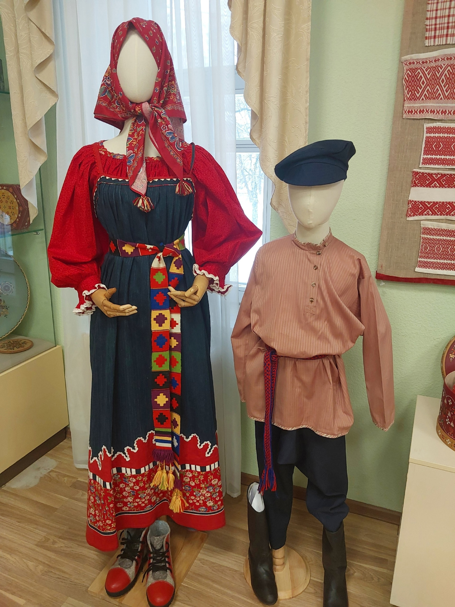 Также можно увидеть тканые пояса Галины Безо-бразовой, традиционную куклу, браное ткачество и вязаное кружево мастеров народных художественных промыслов Вологодской области Анны Прохоровой и Валентины Долгополовой, традиционные костюмы Людмилы Пахомовой.