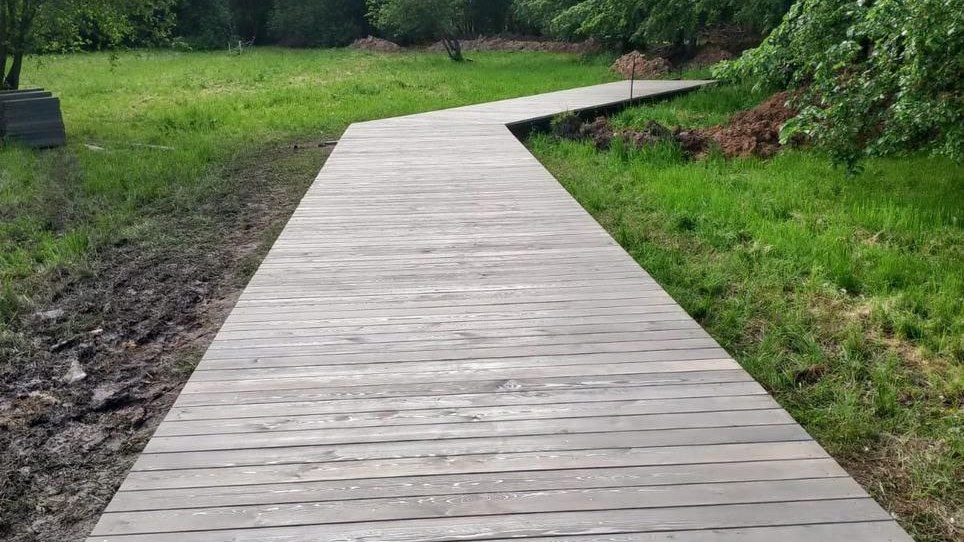 Со слов главы города, уже установлено более 358 свай, проложены траншеи для электропроводки и ведётся монтаж металлического каркаса экотропы. Также планируют подготовить основание для современной детской площадки и создать спортивную зону.