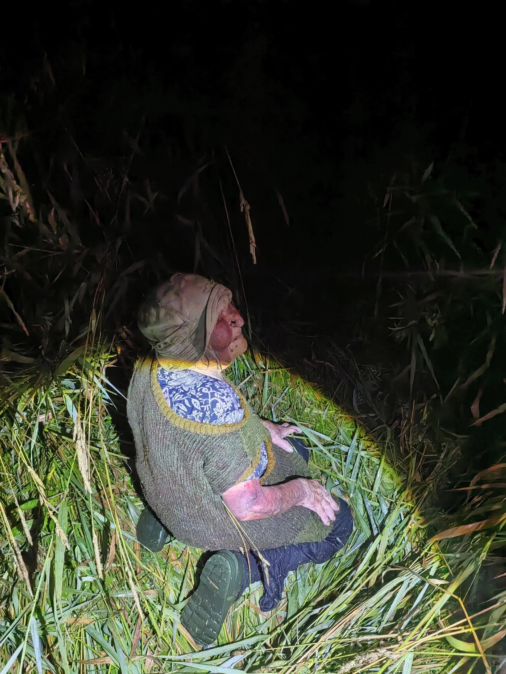 Вскоре они услышали более отчётливый стон и голос. Через пару минут волонтёры нашли бабушку.