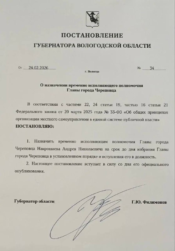 Напомним, Андрей Накрошаев с октября 2024 года занимал пост мэра города Вологды. В июле 2025 года он покинул пост и вскоре стал и.о. министра строительства области.