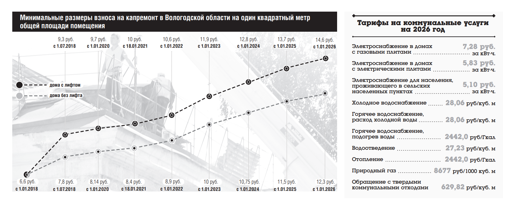 С 1 января минимальный размер взноса на капремонт для домов без лифта составляет 12,3 рубля за квадратный метр (было 11,5 рубля). Для домов с лифтом взнос увеличен до 14,6 рубля (было 13,7 рубля).