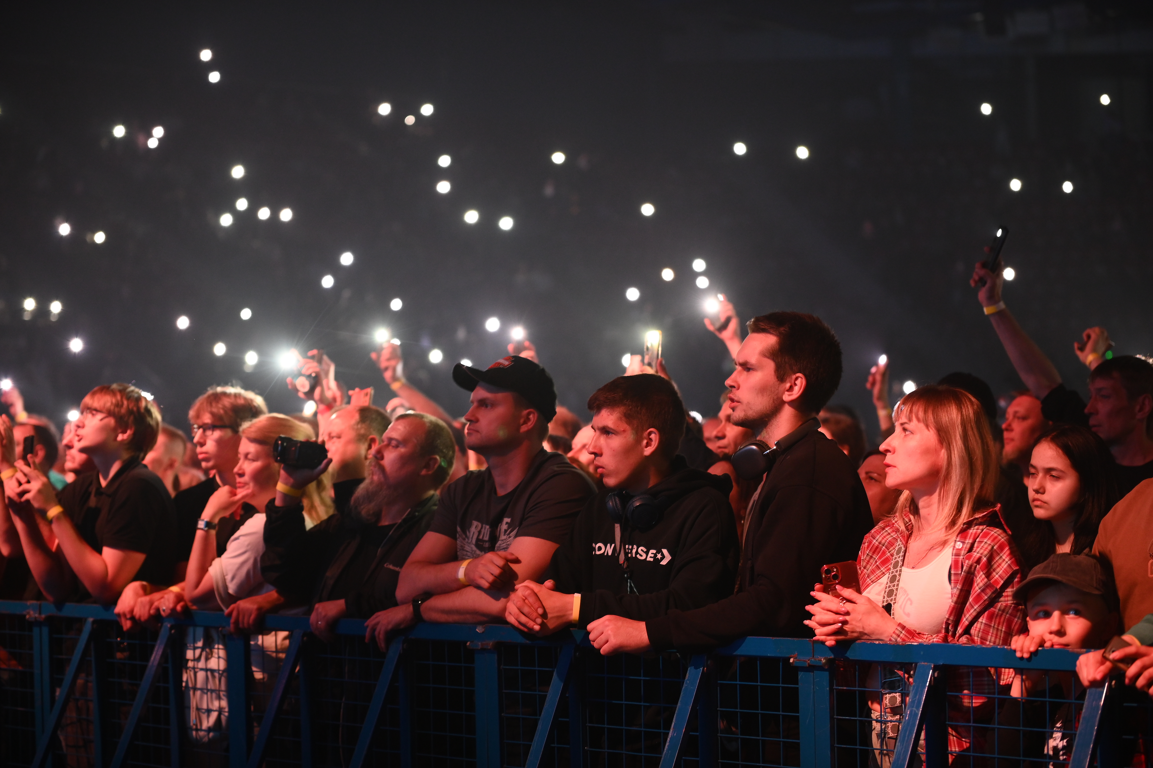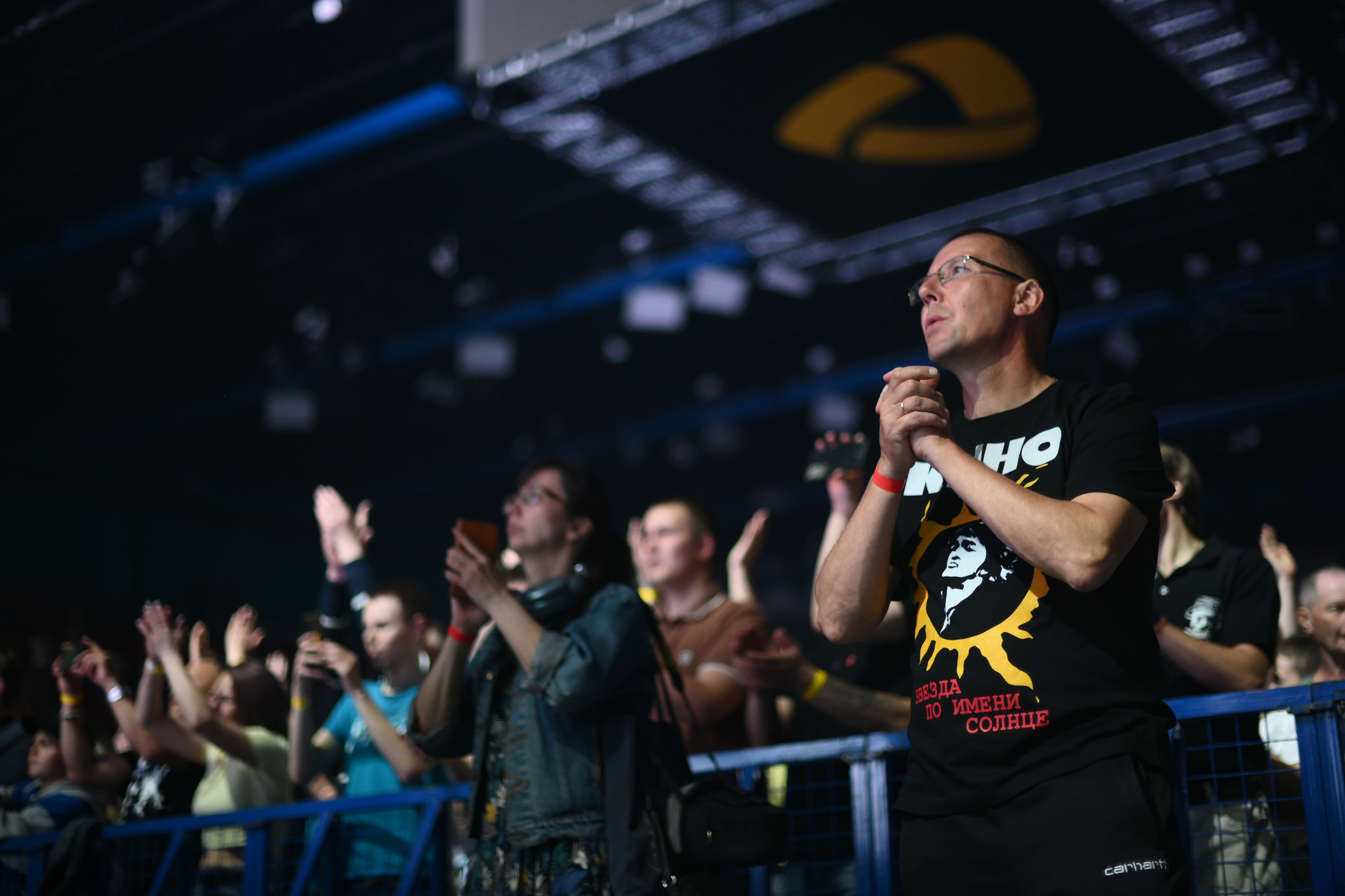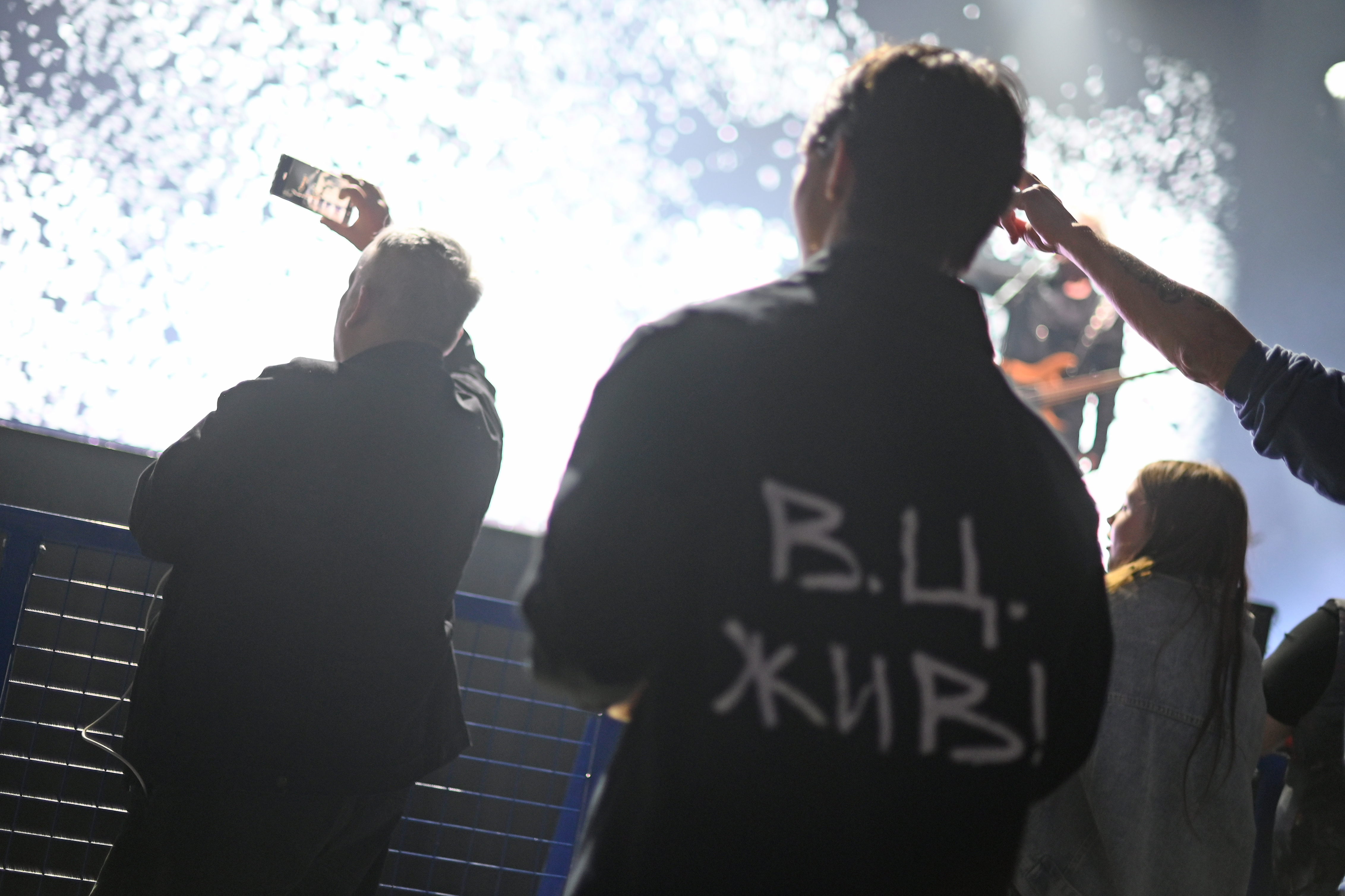 Но по разговорам в зале, выкрикам и даже по майкам было видно, что большинство — несколько тысяч — пришли на группу «Кино». Многие достали из дальних закоулков своих шифоньеров футболки 1980-х годов. Из-за множественных стирок «звезда по имени Солнце» на майках побледнела, но, судя по тому, как принимали версию «Кино» 2025 года в Череповце, солнце по сей день горит в сердцах поклонников.
