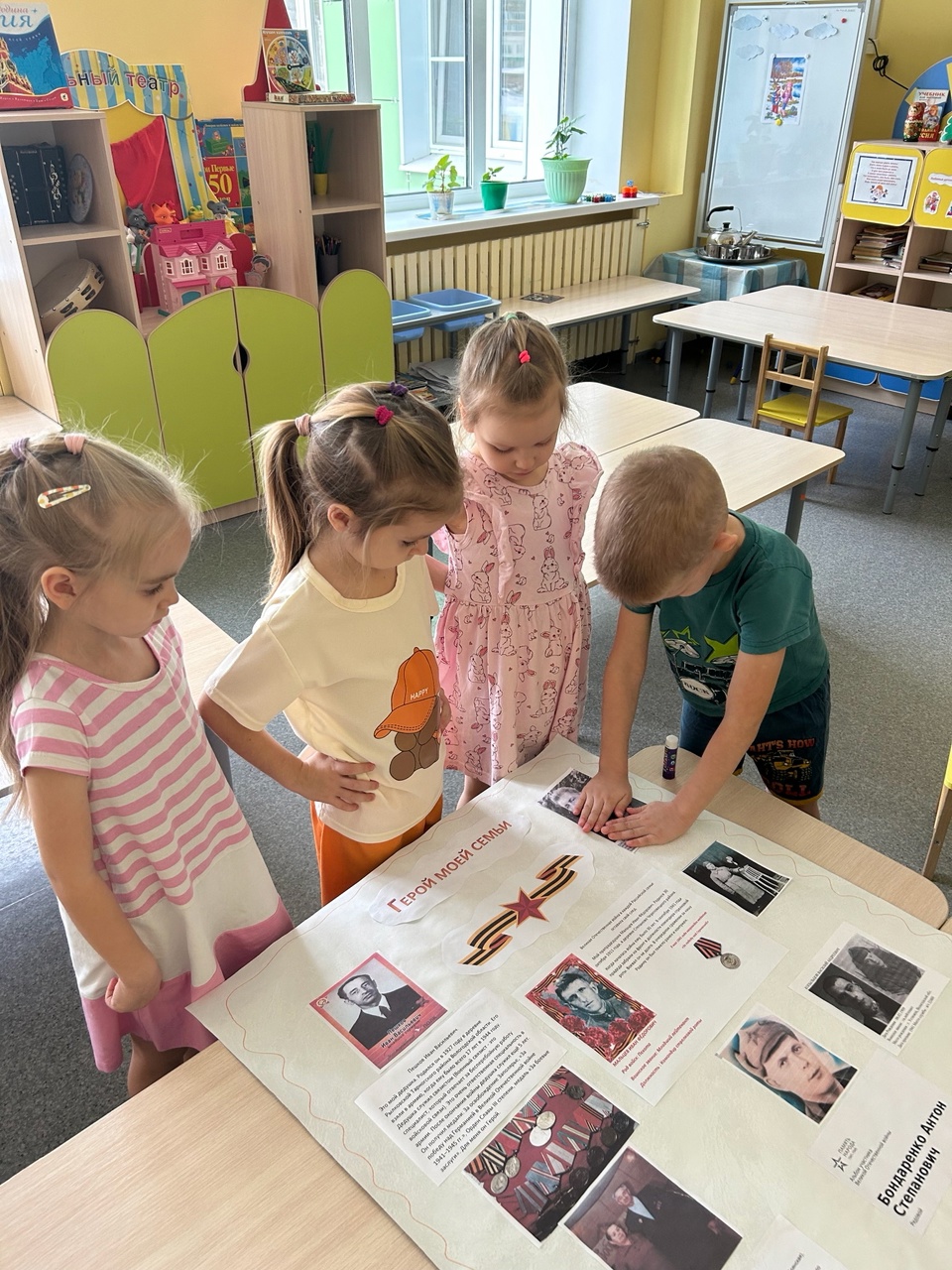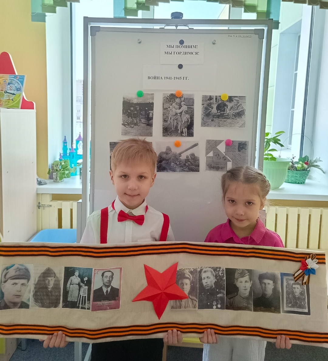 Воспитанники детского сада № 39 «Калейдоскоп» под руководством педагогов Ларисы Мальцевой и Татьяны Савиной изучили историю своих прапрадедов – участников Великой Отечественной войны, узнали о их подвигах и наградах.