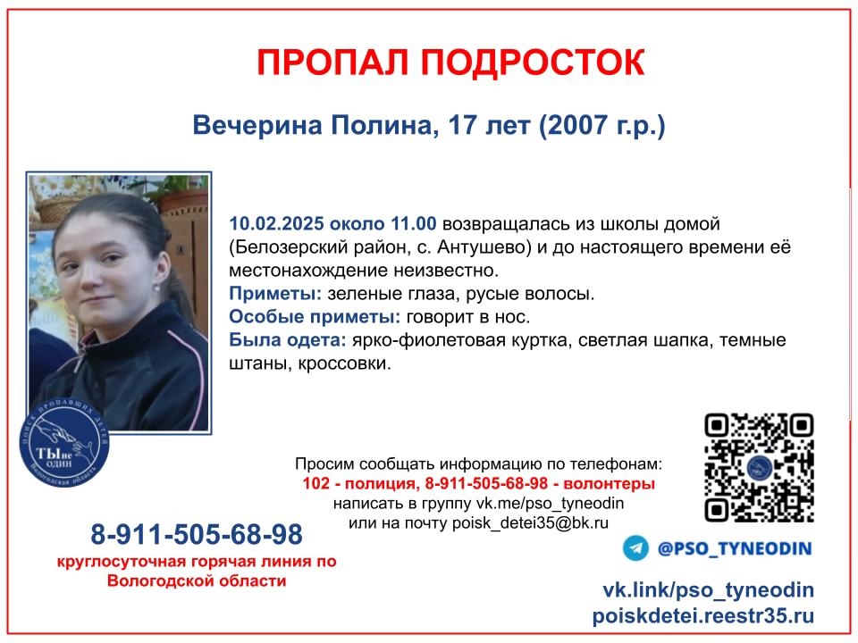 17-летнюю девушку второй день ищут в Белозерском округе. Фото: ПСО "Ты не один".
