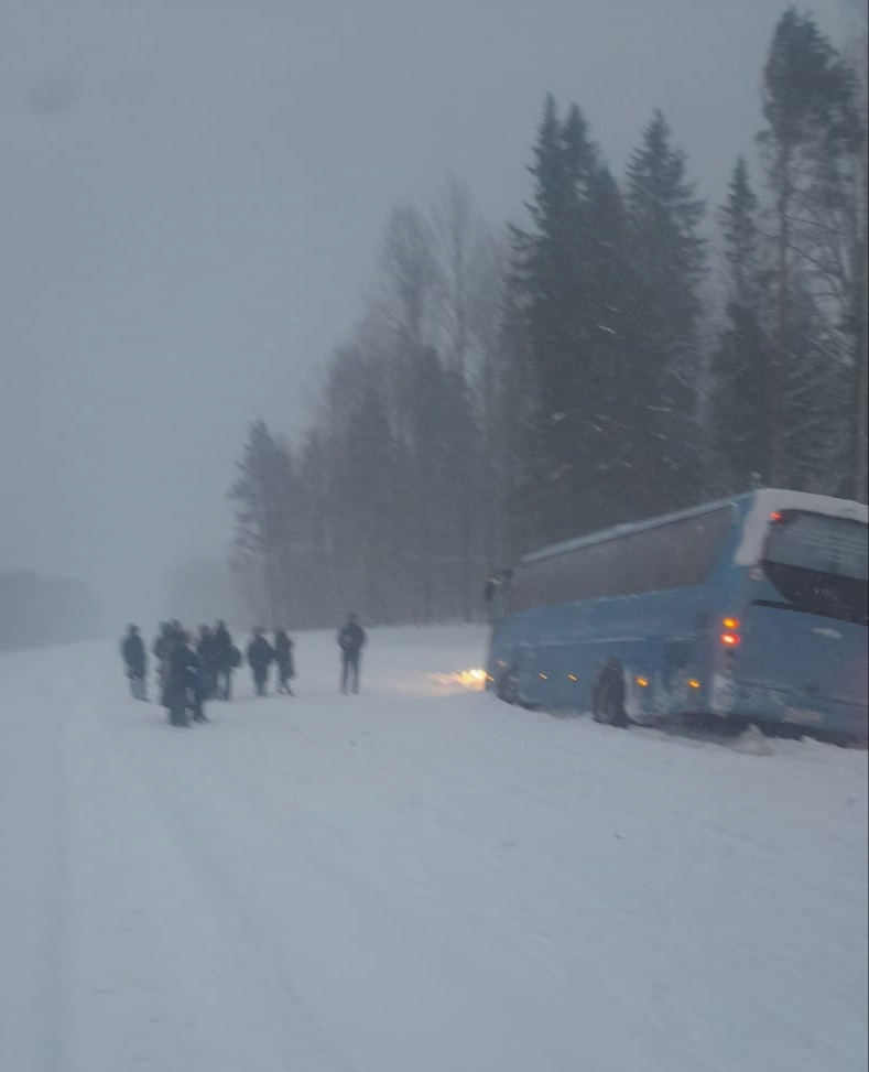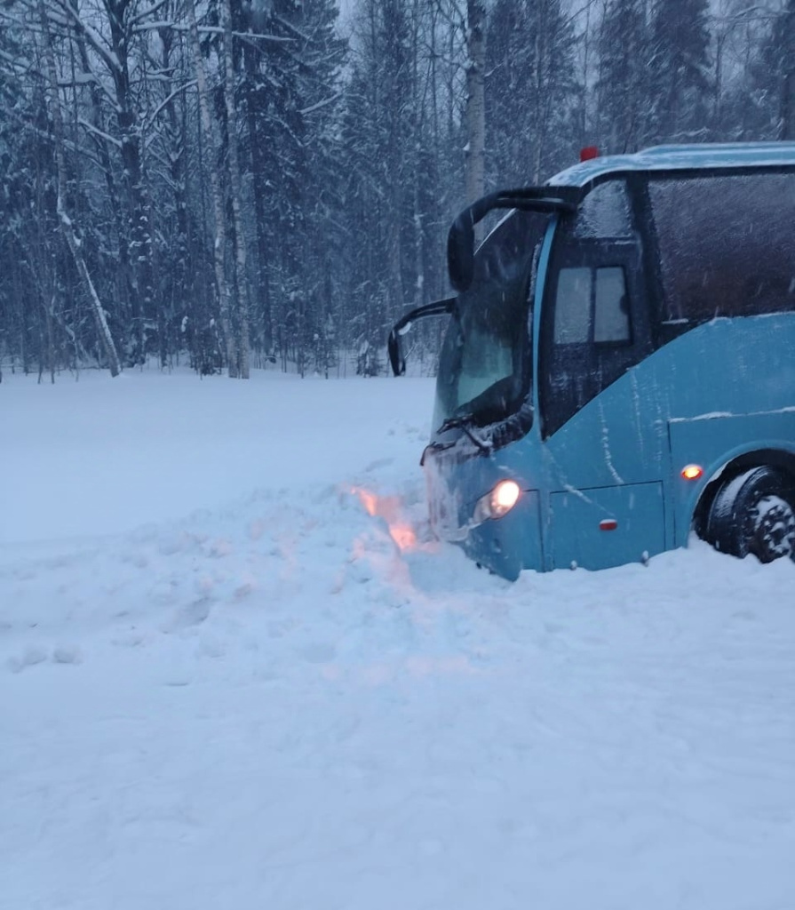 ДТП произошло утром 12 января. В пяти километрах от села Шелтозеро автобус, направлявшийся из Петрозаводска в Вологду, съехал с дороги в кювет и застрял в сугробе.