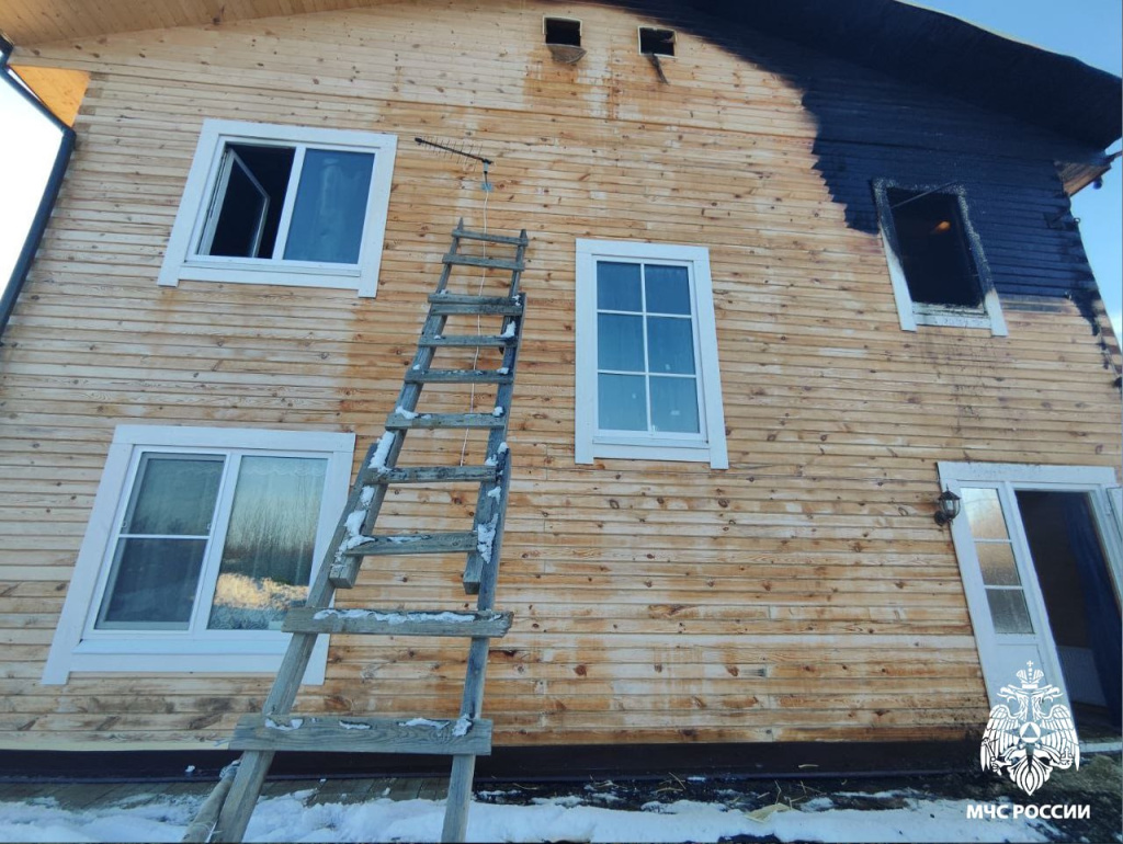 Площадь возгорания составила 28 кв.м. Огнем повреждена внутренняя отделка комнаты на втором этаже и внешние стены дома.