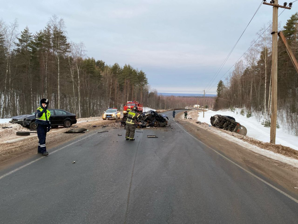 ДТП произошло утром 27 февраля под Вытегрой. Фото: УМВД по Вологодской области.