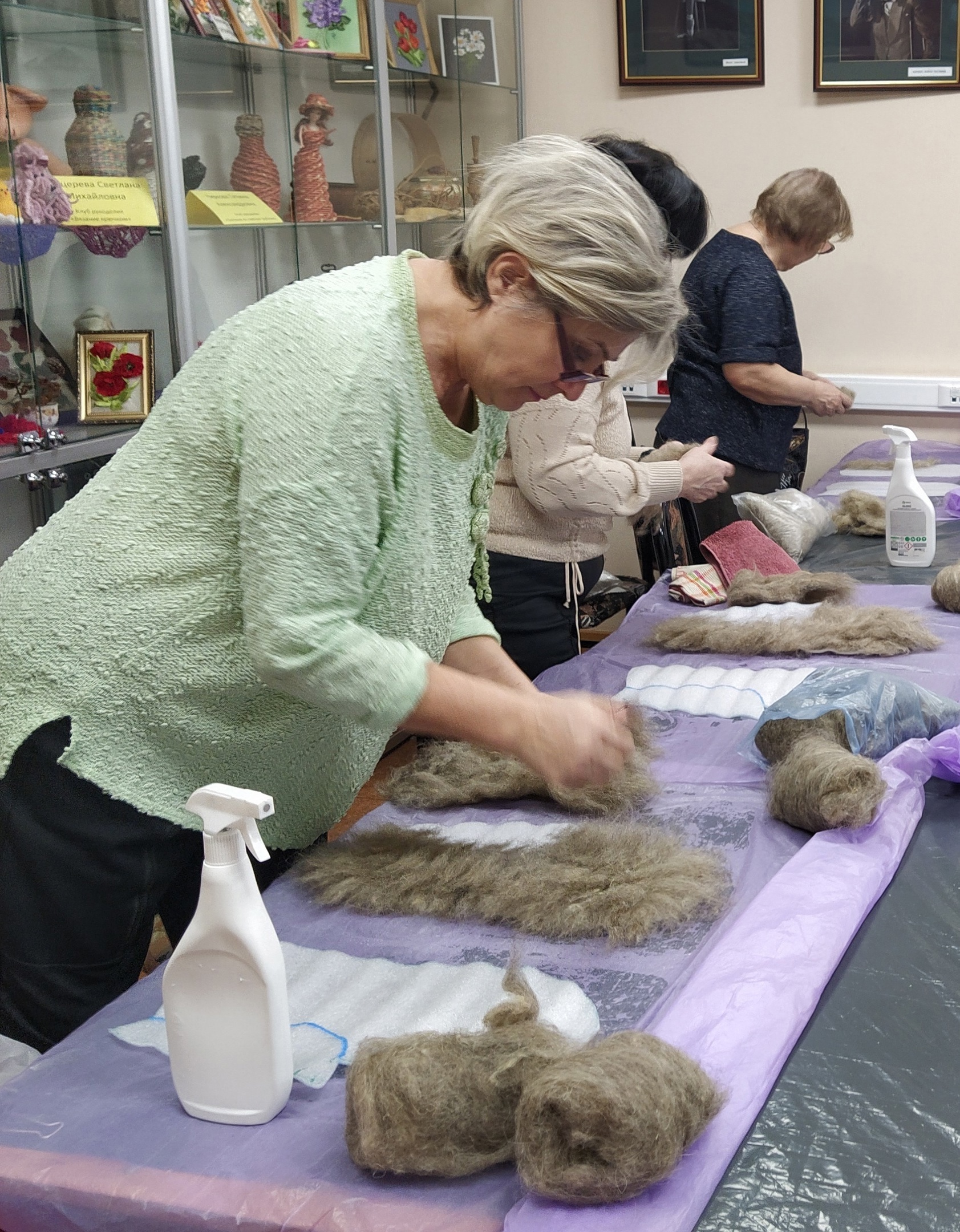 — В прошлом году делали валяные носки, в этом освоили следки. Мы их создаем вручную, без каких-либо приспособлений. За занятие, которое длится 2–3 часа, каждый делает свою пару. Потом готовое изделие нужно прополоскать и высушить. Как партия накапливается, мы ее передаем волонтерам для отправки. Сейчас уже подготовили больше десятка пар, — рассказала «Речи» руководитель кружка Светлана Аляева.