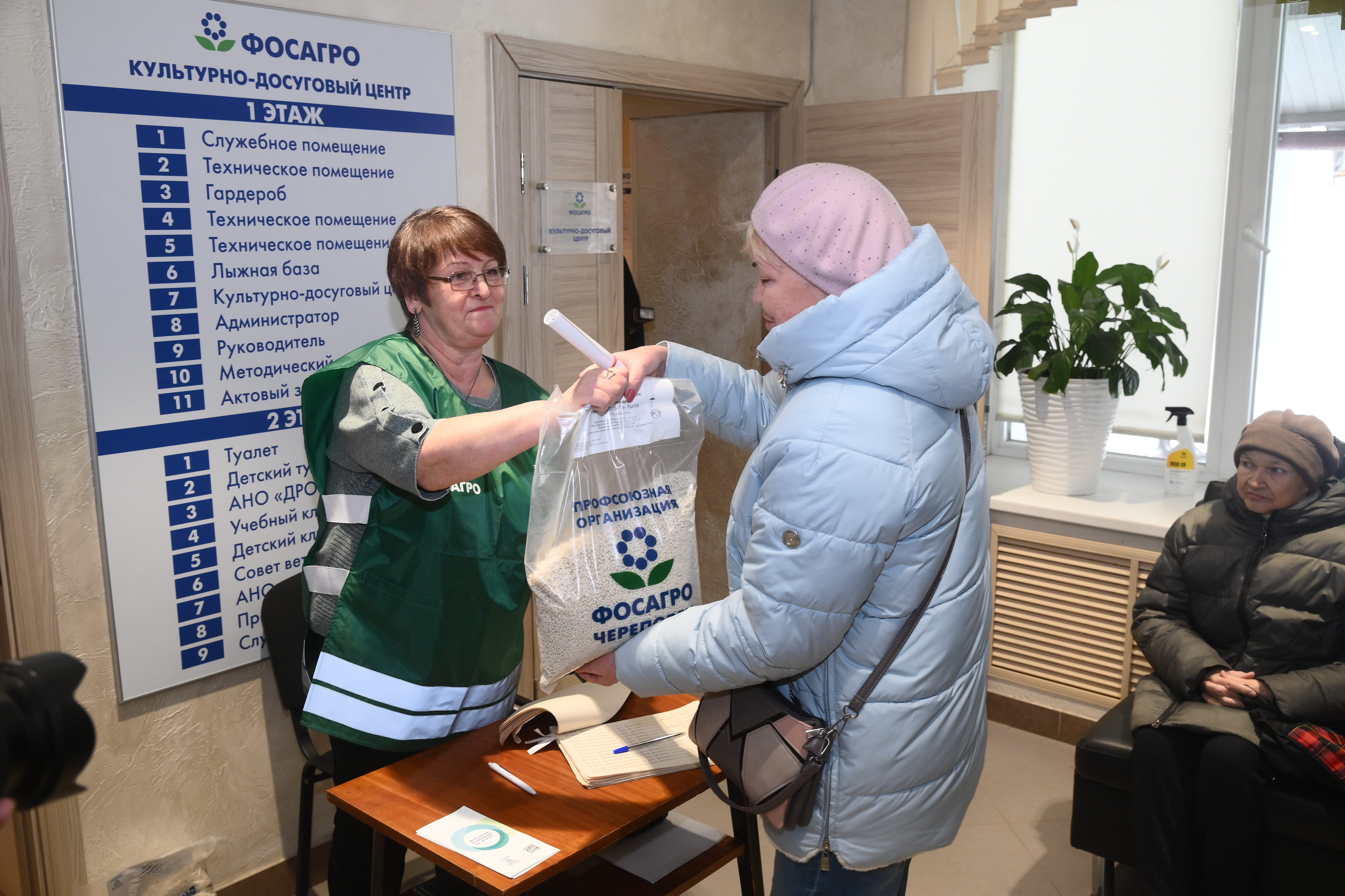 В культурно-досуговом центре «ФосАгро» ветераны химического производства бесплатно получили комплексные удобрения для своих хозяйств. Более 20 лет работники, даже находясь на заслуженном отдыхе, получают удобрения от родного предприятия.