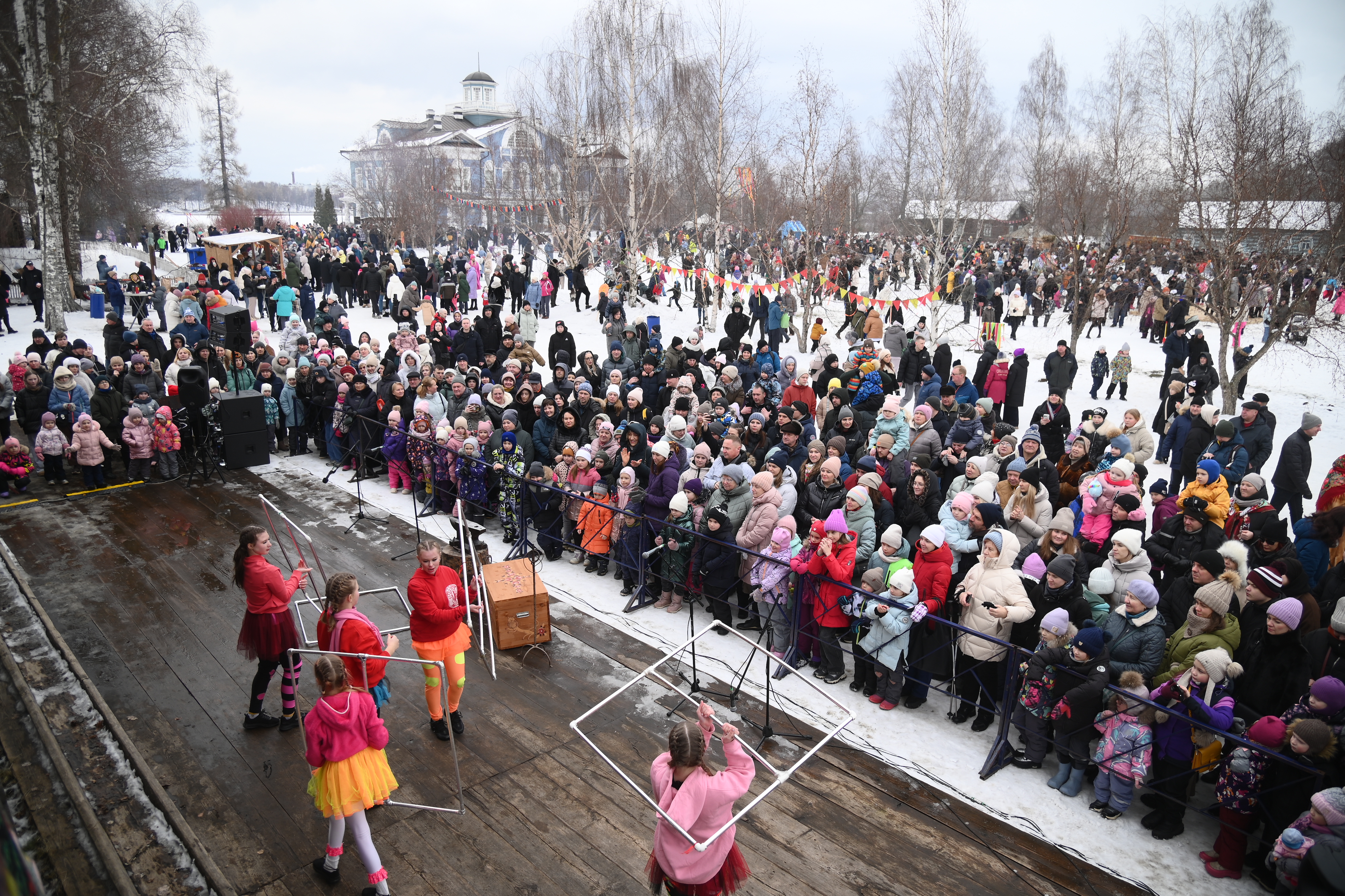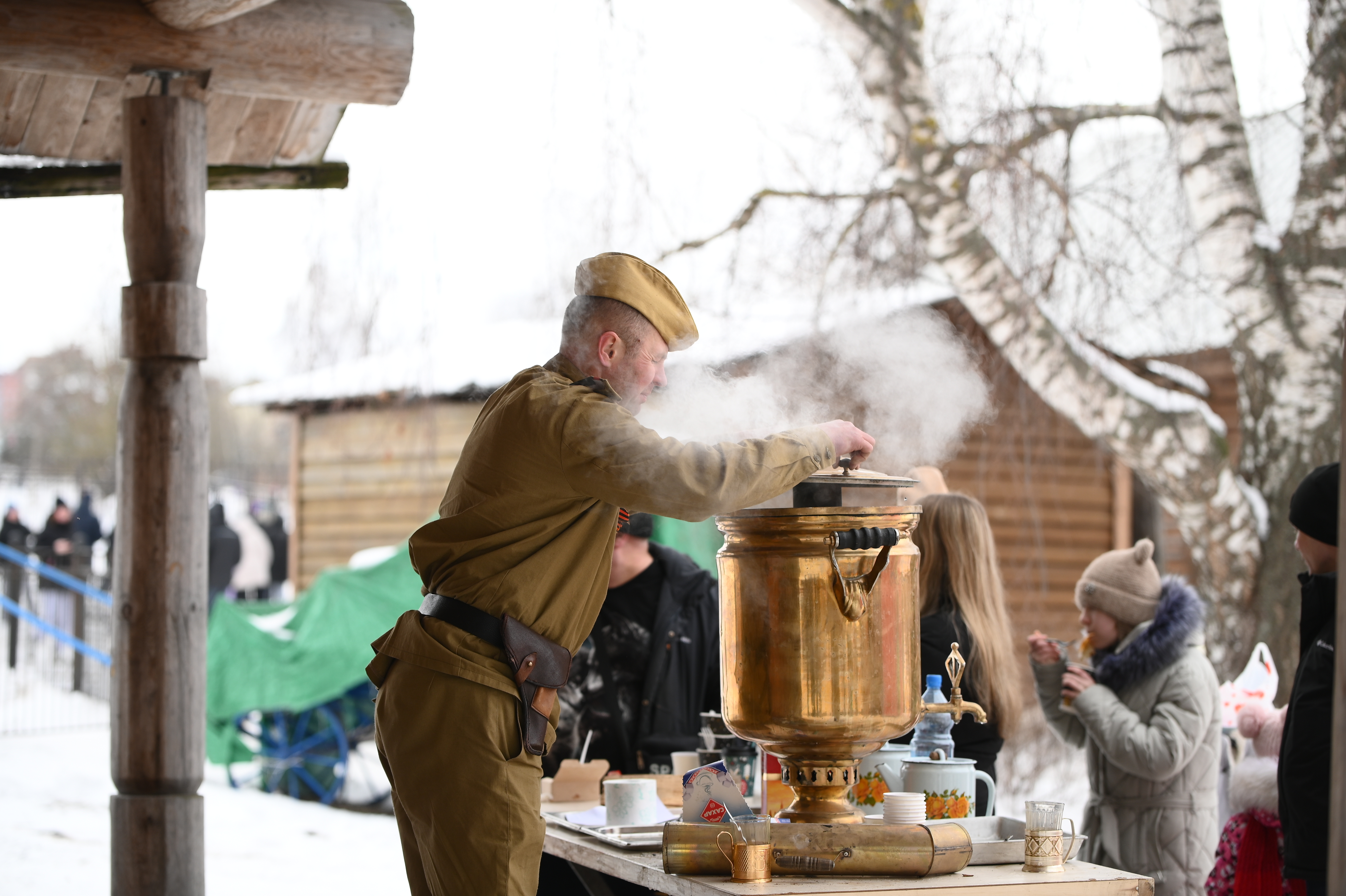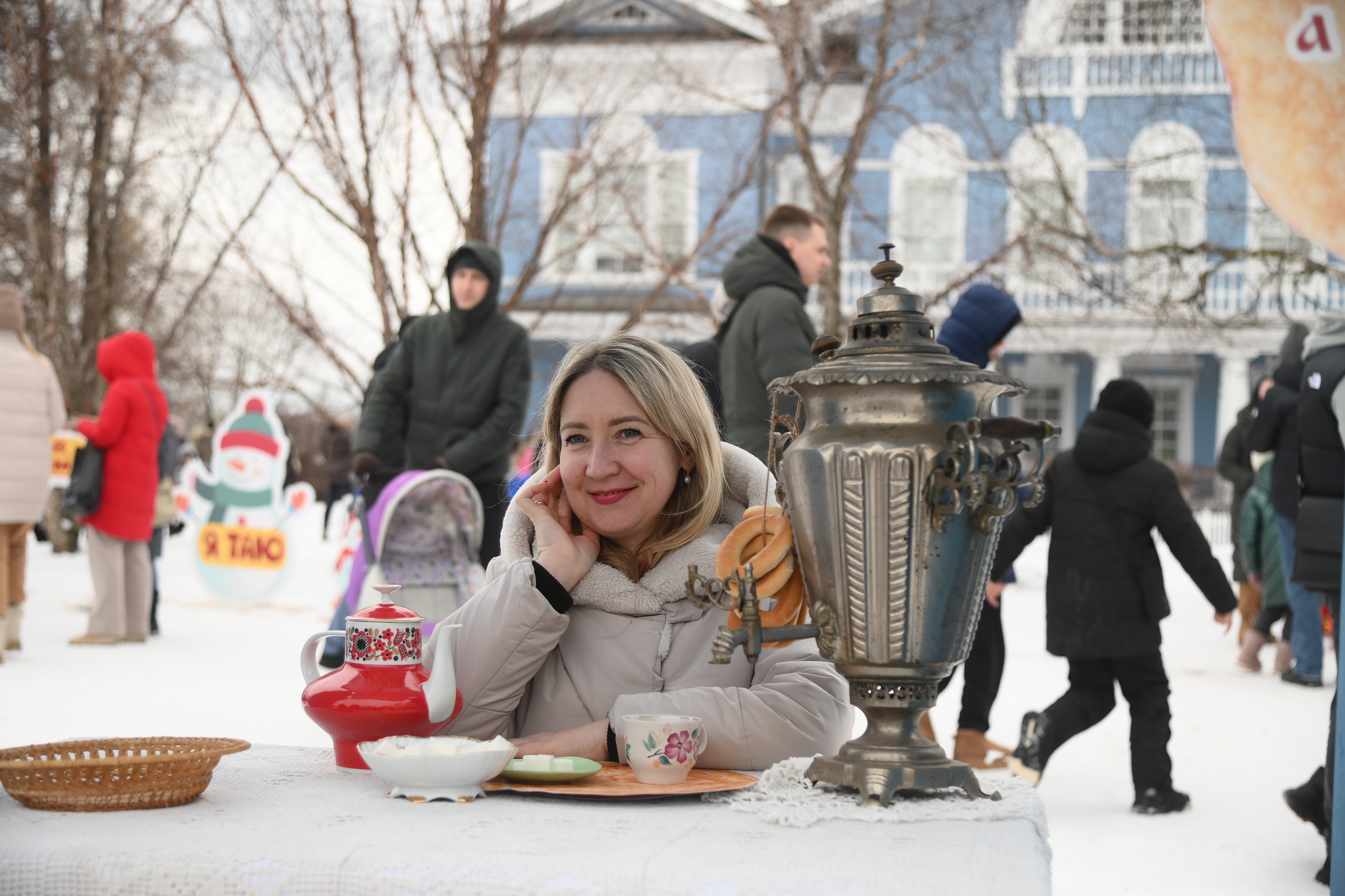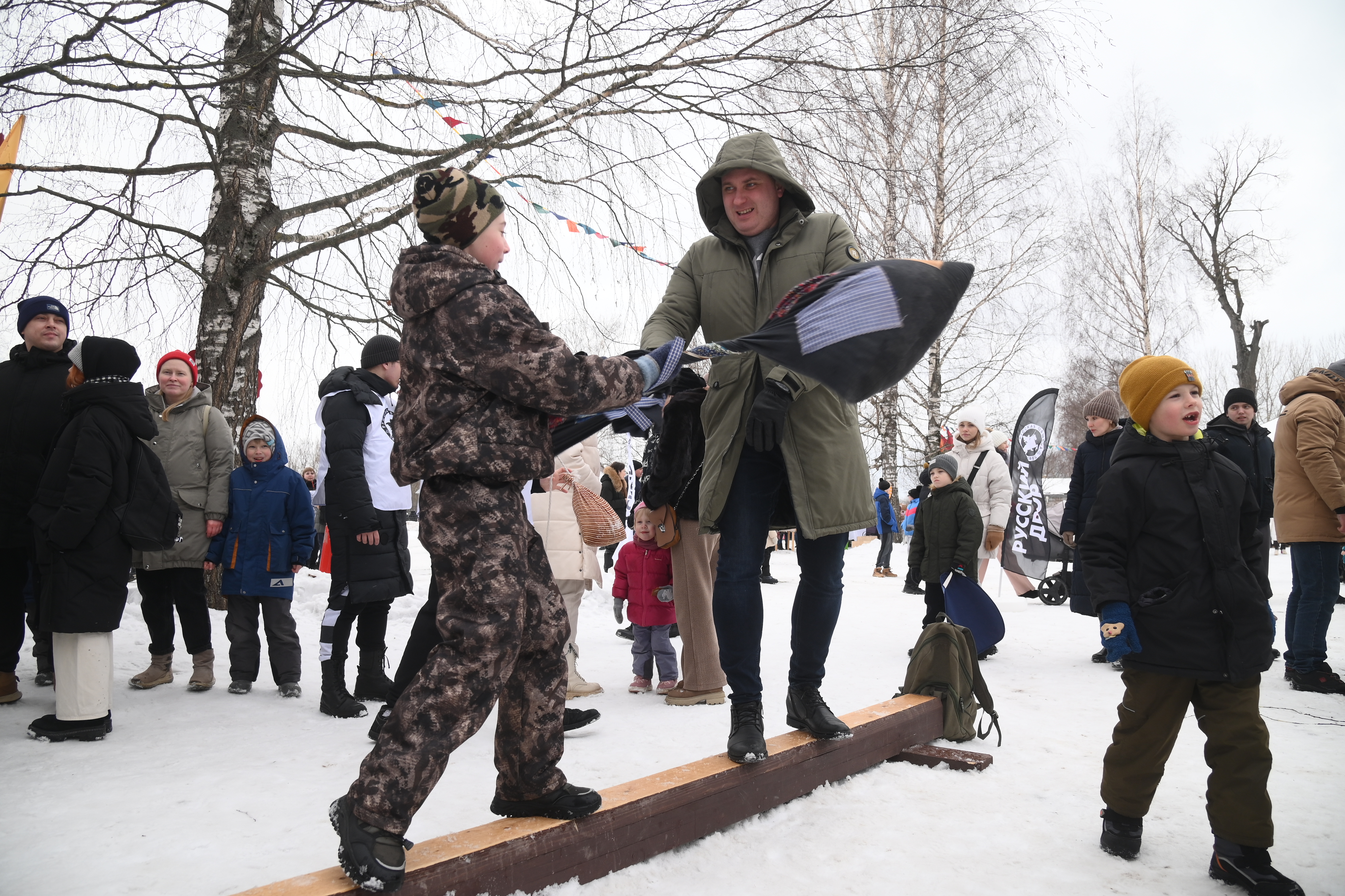 Масленичные гуляния прошли в воскресенье на трех площадках — в усадьбе Гальских праздник получился самым близким к традиционной Масленице, там пели песни под гармонь, угощали чаем из самовара, бились на мечах и боролись, перетягивали канат, катались на лошадях.