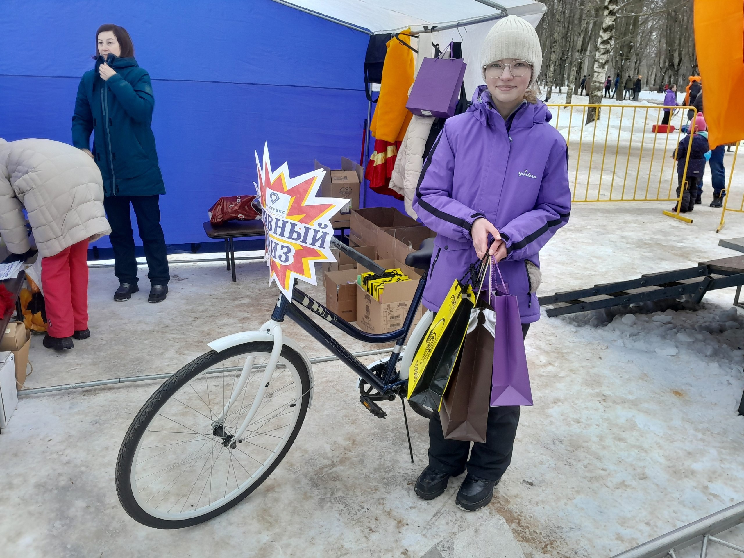 Попробовать свое творение в парке тоже не вышло: блин-победитель был отдан на съедение первым рядам зрителей. Завоеванный велосипед школьница планирует увезти в деревню. Домой поехала на нем по лужам и снегу, даже не сняв надписи «Главный приз». Пусть все видят, что приносят умение и выдумка.