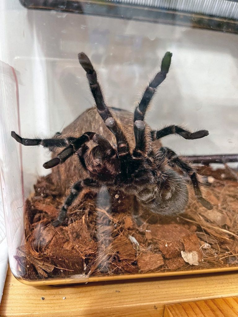 Компанию рептилии составляют карело-финская лайка, два кота, морская свинка, паук и рыбки. Межвидовое разнообразие впечатляет, не правда ли?