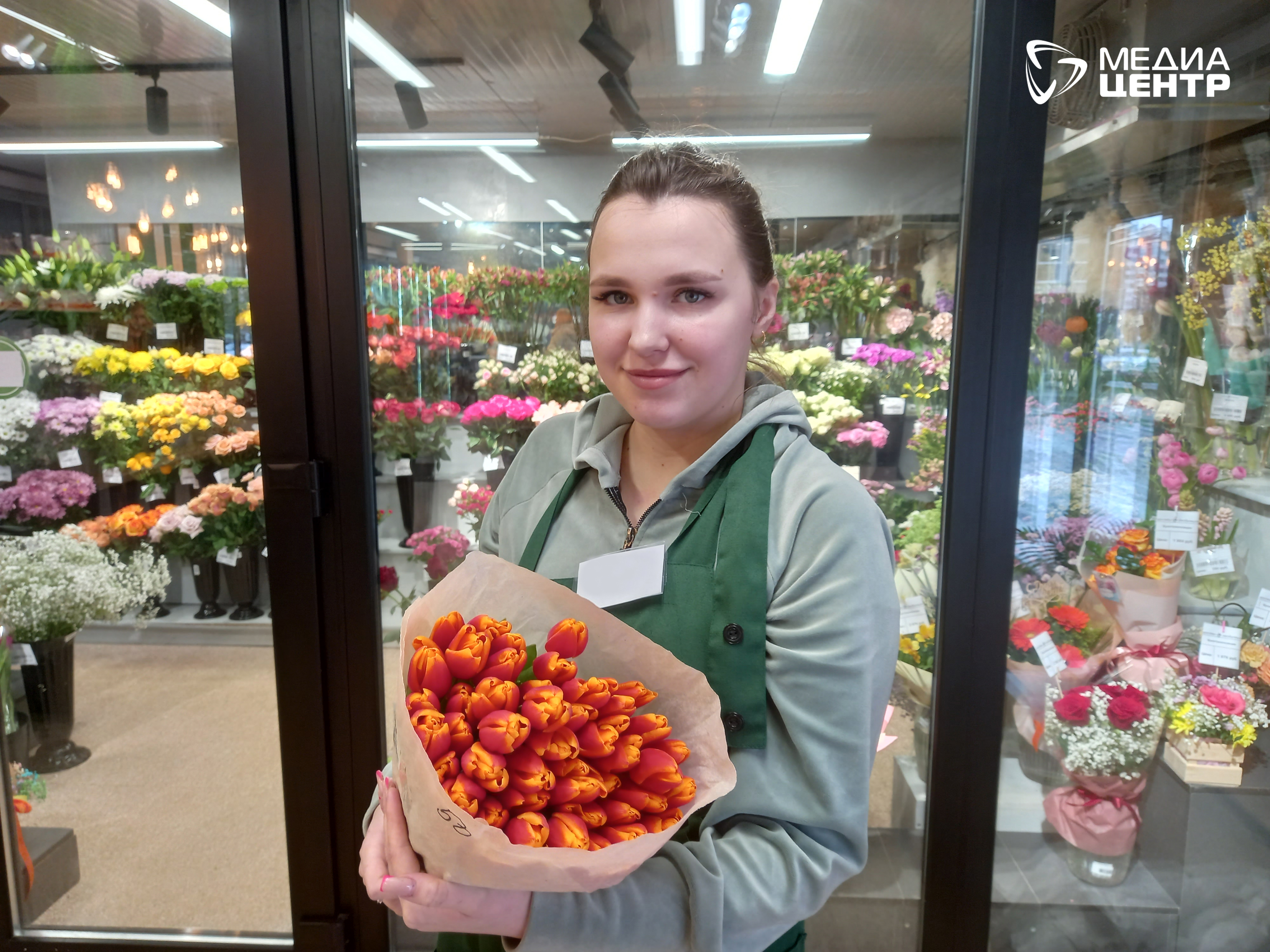 В завершение заходим в салон «Цветы любимым». Один тюльпан здесь стоит 160 рублей. Откуда везут цветы? Из Калуги, Голландии, Эквадора.