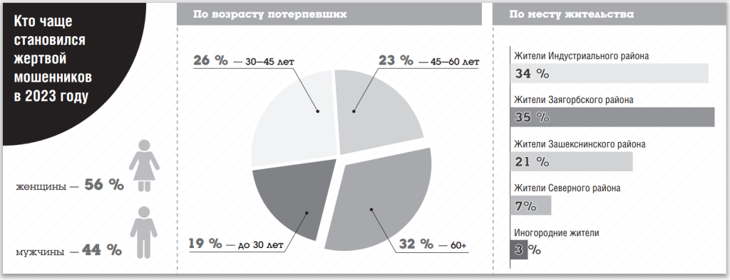 Если классифицировать по районам, по месту жительства, то чаще всего жертвами обмана становятся жители Заречья (смотрите инфографику к материалу).