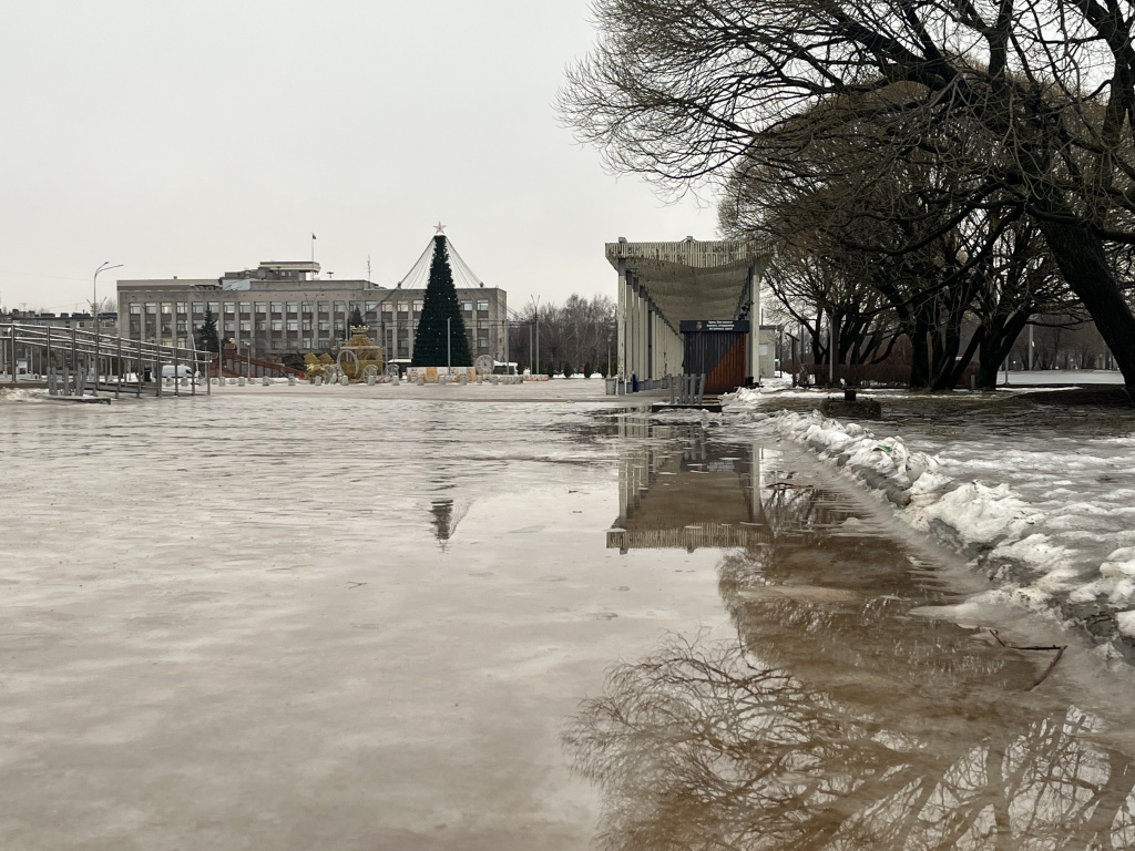 Фестиваль ледяных скульптур последние годы проводили на площади Молодежи. Сегодня она ушла под воду.