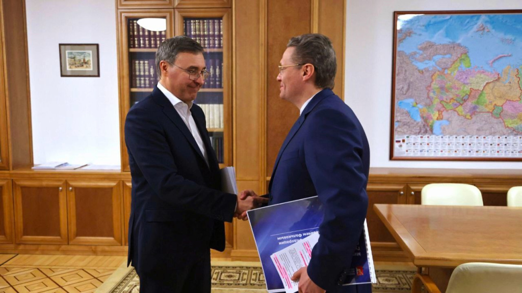 Губернатор Георгий Филимонов встретился с министром науки и высшего образования Валерием Фальковым. Фото: ТК Г.Филимонова.
