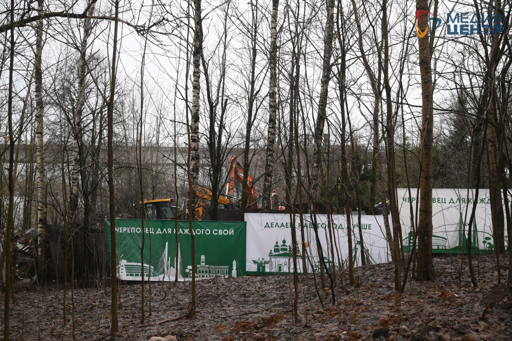 На участке, который до сих пор - дабы не портить вид - закрыт баннерами, располагались разрушенные деревянные постройки, остатки забора и даже помятая вазовская «девятка». Чтобы разобрать завалы, потребовалась строительная техника.