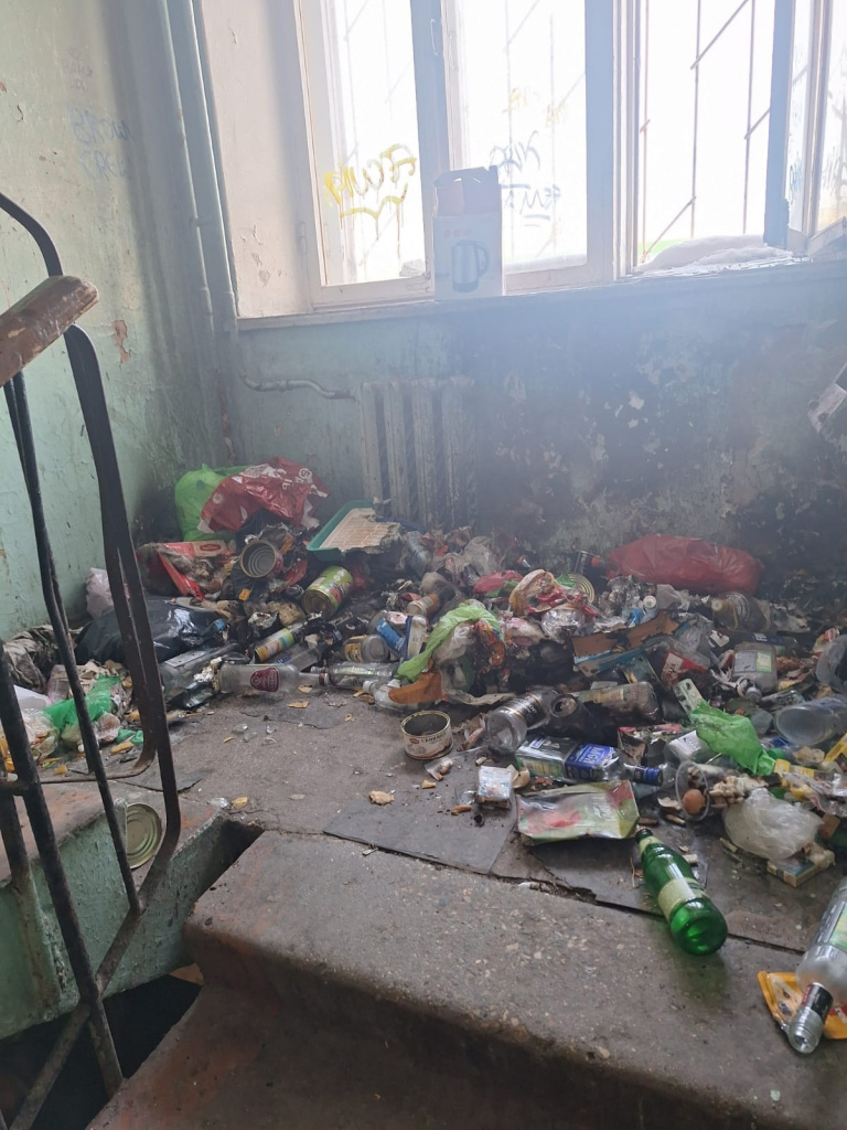 До мусоропровода или уличного контейнера люди не донесли бутылки, консервные банки, окурки, очистки. Вишенкой на торте, а точнее, на этой мусорной куче стал сгоревший кошачий лоток.
