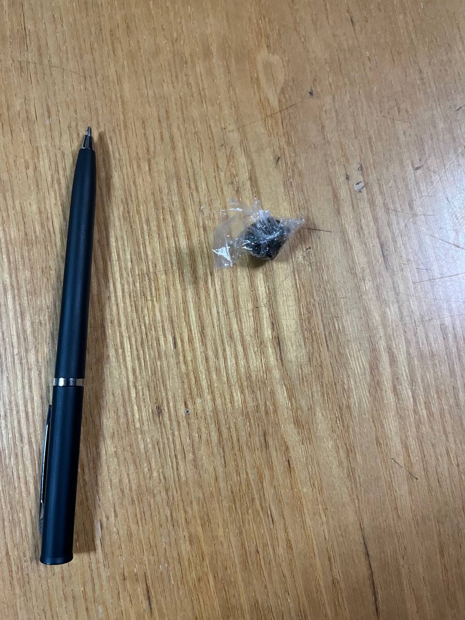 При личном досмотреу нарушителя был обнаружен свёрток, перевязанный чёрной изолентой. Экспертиза показала, что в нём находился синтетический наркотик массой 0,89 грамма.