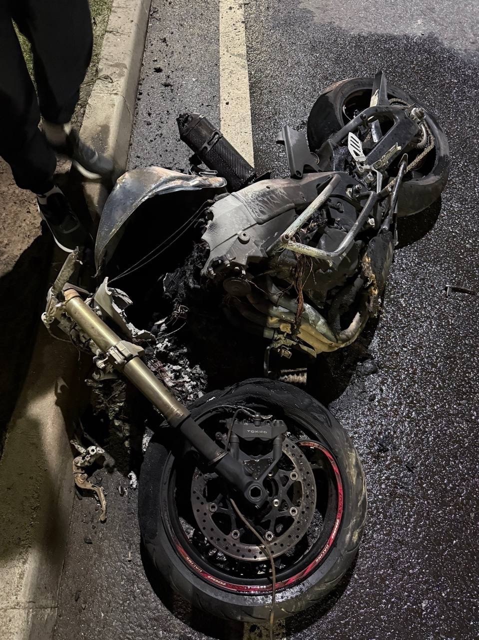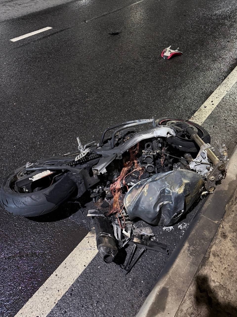 По словам очевидцев, после столкновения мотоцикл снес заграждение и от удара загорелся.