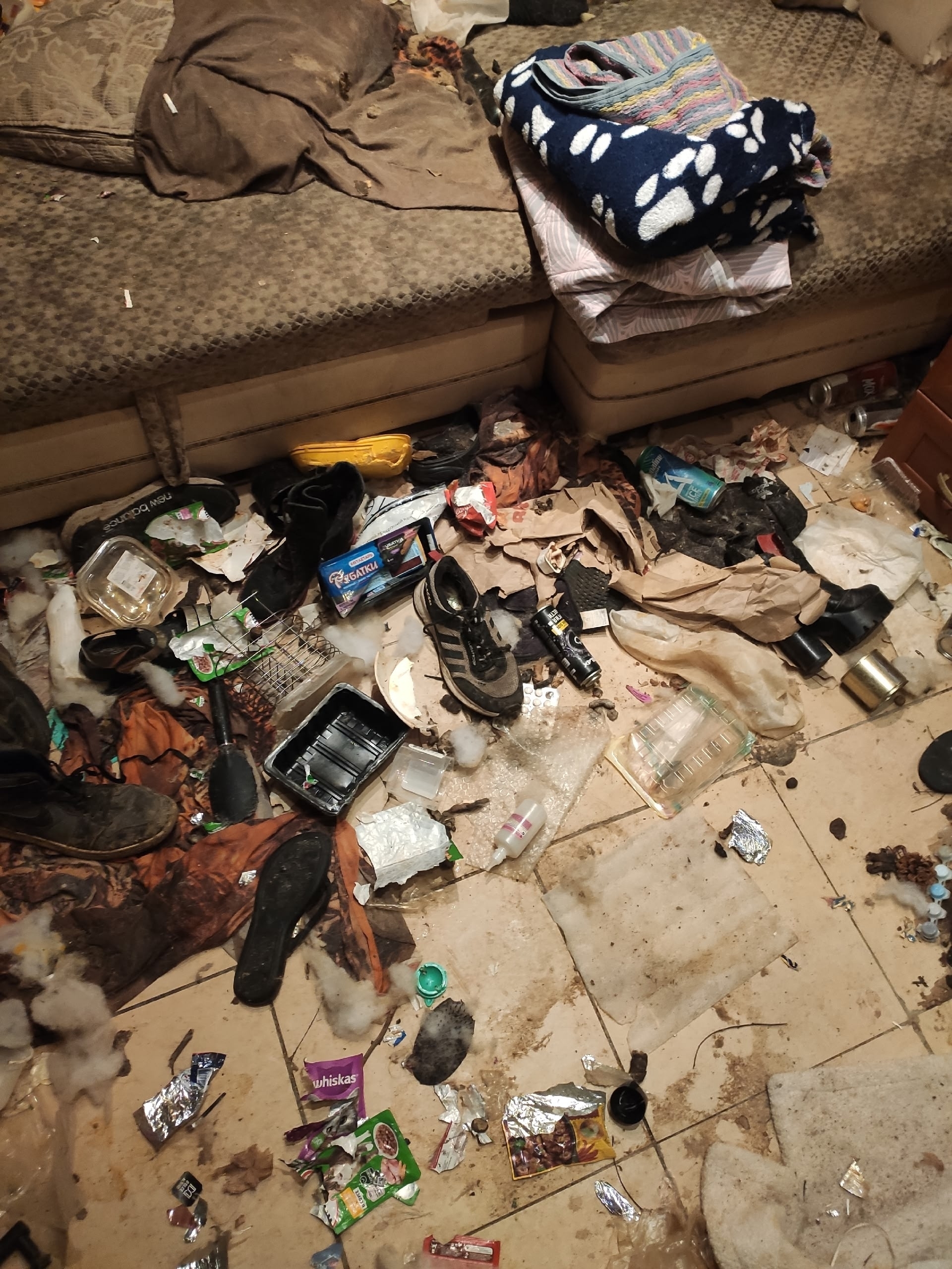 Обстановка в помещении была ужасающей. В запертой квартире волонтёры обнаружили крысу, которая умерла от голода, двух собак и кошку, выпрыгнувшую от страха в окно первого этажа.