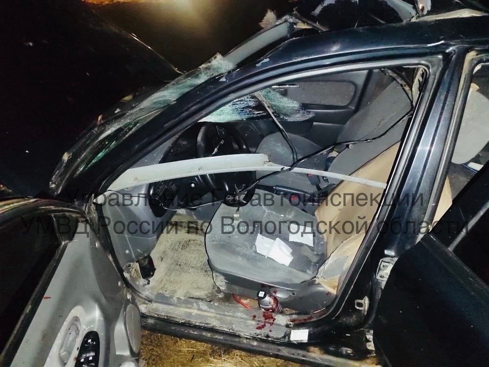 Водитель 2007 года рождения (стаж 11 месяцев, житель Ярославской области) на «Киа Спектра» в зоне знака «Дикие животные» заметил на своей полосе стоящего лося. Вместо торможения он выехал на встречную полосу, чтобы объехать животное. Лось начал движение навстречу, произошло столкновение. После удара машина съехала в левый кювет. Пассажир 2008 года рождения с травмами доставлен в ВОБ №2. Водитель после осмотра фельдшером остался на месте.