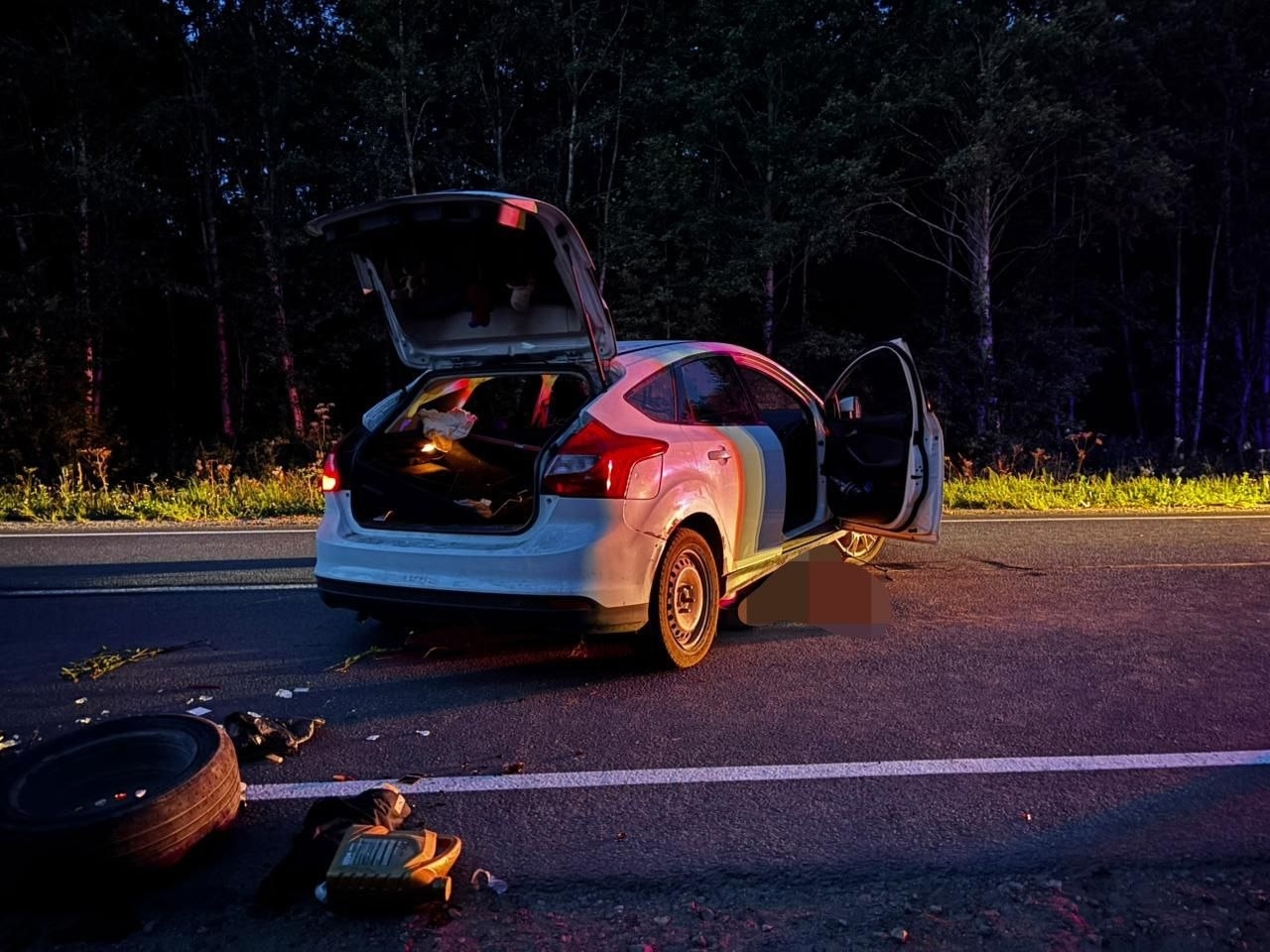 Мужчина ехал на автомобиле «Форд Фокус» по грунтовой лесной дороге — неофициальному съезду с берега Белозерского обводного канала. Он был пьян. В темноте водитель не заметил лежащего поперёк дороги молодого человека. Рядом стояли люди, которые кричали и подавали сигналы руками, но водитель не среагировал и сбил пешехода. После этого он покинул место аварии и скрылся через лесополосу.