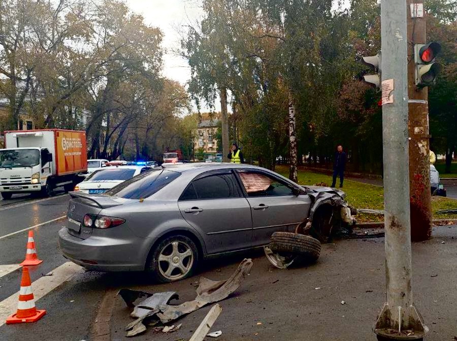 По данным областного УМВД, сегодня в 10 утра у моста 800-летия 19-летний водитель «Мазды» поворачивал на улицу Горького, он не справился с управлением и врезался в столб.
