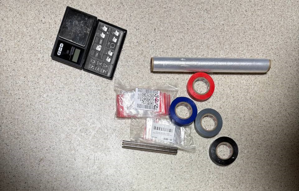 У подозреваемой было обнаружено и изъято 6 свёртков с неизвестным веществом и сотовый телефон. В ходе обыска по месту жительства на ул. Ягодная полицейские изъяли 3 свёртка в изоленте синего цвета, полимерные пакеты, магниты и электронные весы.